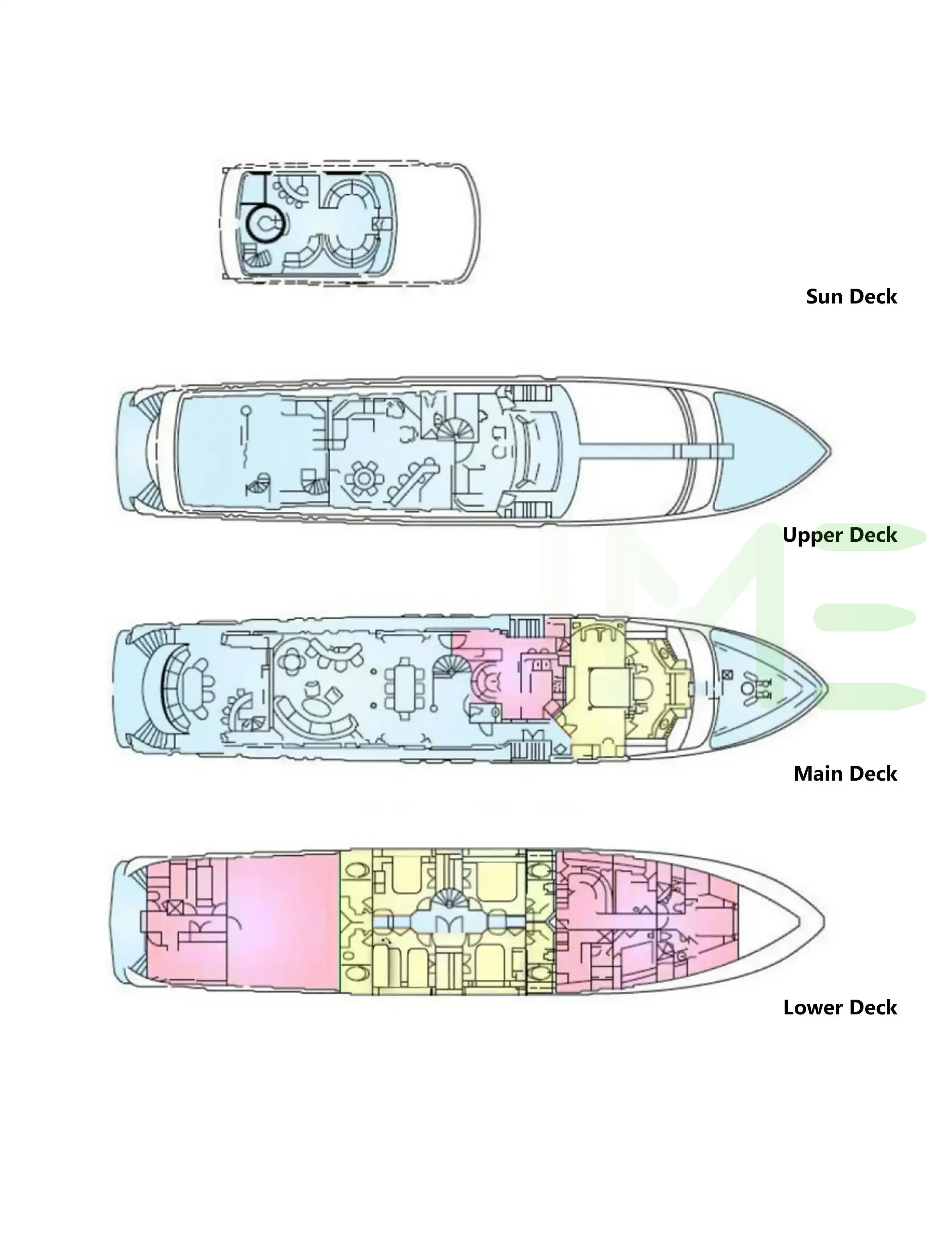 Request plans that include the layout of staterooms, guest areas, and outdoor spaces, as well as crew quarters and work areas.