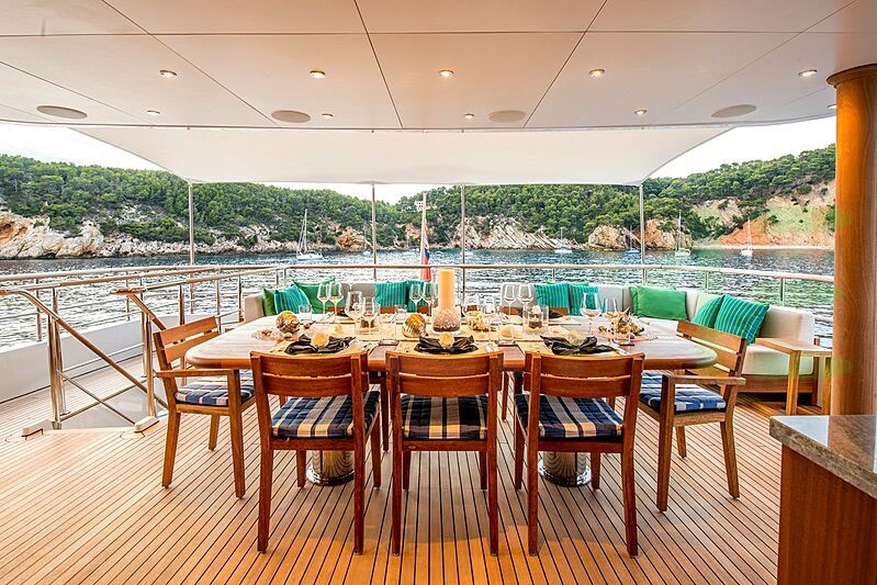 To respect the privacy of the DE-DE yacht owner and guests, the DE-DE yacht location is privately available to prospective clients only. For details about the current location, winter and summer cruising regions, and the availability of the DE-DE yacht for charter, along with additional insider information about alternative yachts similar to DE-DE, contact a LIME yacht charter broker for a full yacht analysis.