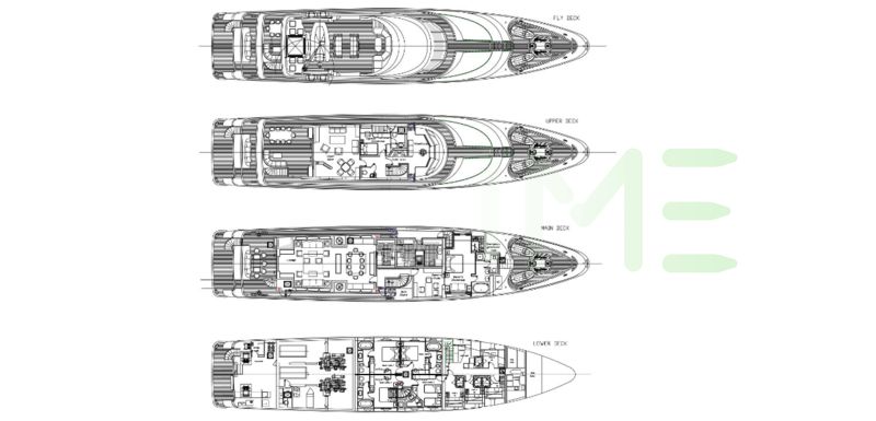 Request plans that include the layout of staterooms, guest areas, and outdoor spaces, as well as crew quarters and work areas.