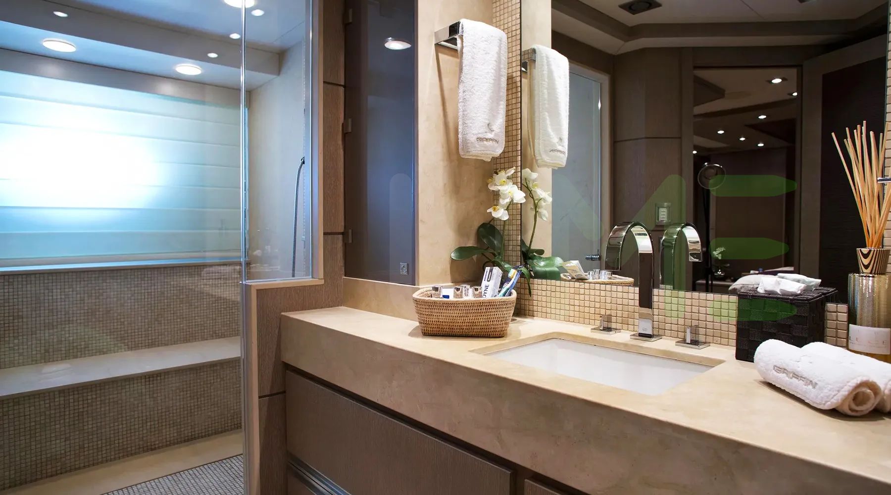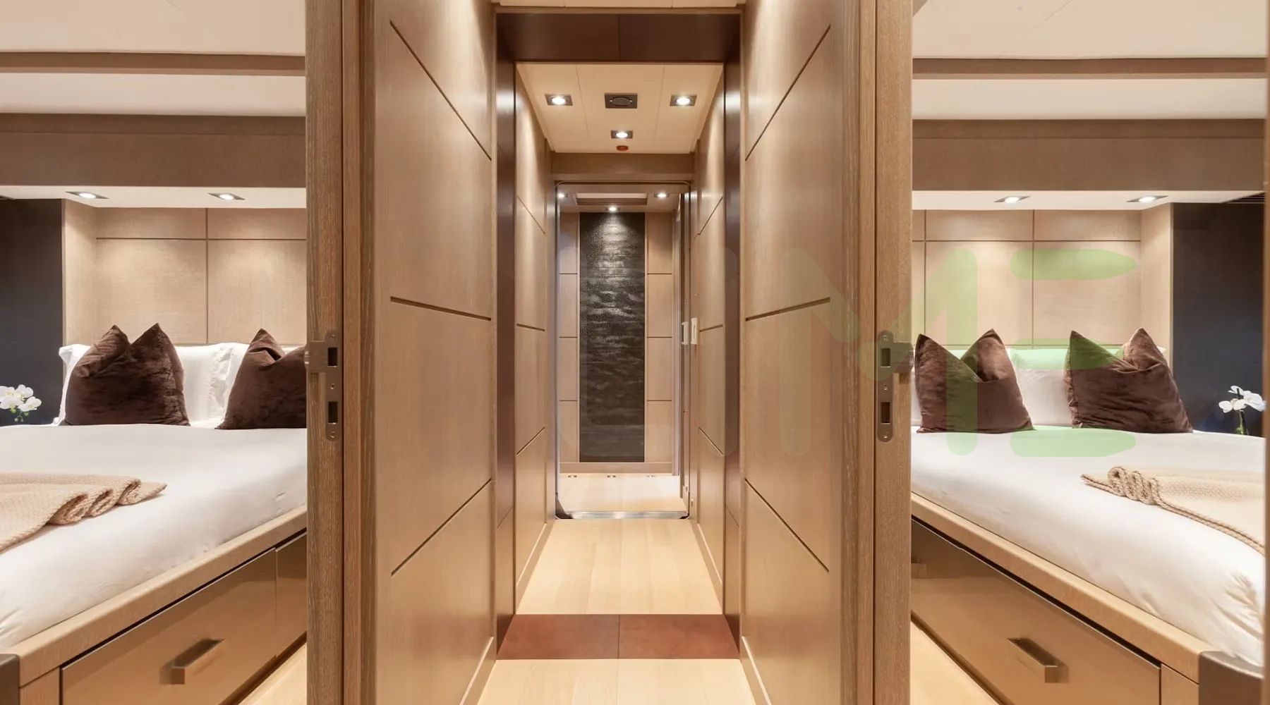 Up to 12 guests can be accommodated on board the superyacht DEFIANT in 5 staterooms. DEFIANT also has accommodations for 7 crew members, including the yacht’s captain.