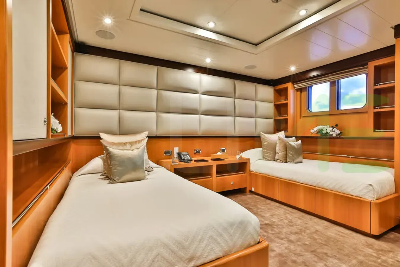 The styling of the DENIKI yacht features exterior design by Tim Heywood Design Ltd. and interior design by Peter Heuvelmans Architectuur. Up to 12 guests can be accommodated on board the superyacht DENIKI in 5 staterooms. DENIKI also has accommodations for 11 crew members, including the yacht’s captain.
