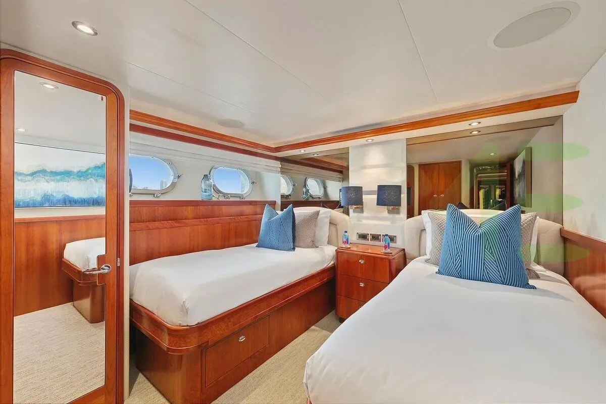 Up to 8 guests can be accommodated on board the superyacht DESPERADO in 4 staterooms. DESPERADO also has accommodations for 3 crew members, including the yacht’s captain.