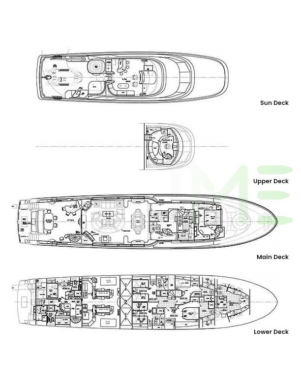 Request plans that include the layout of staterooms, guest areas, and outdoor spaces, as well as crew quarters and work areas.