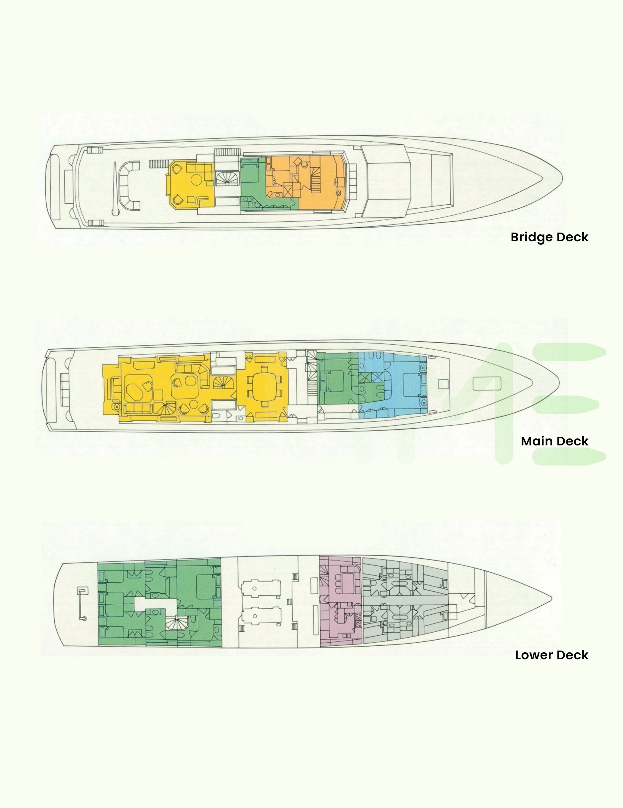 Request plans that include the layout of staterooms, guest areas, and outdoor spaces, as well as crew quarters and work areas.