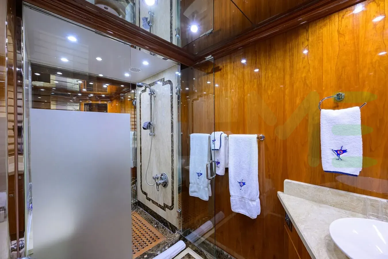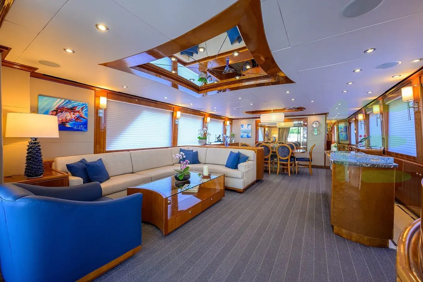 The styling of the DONE DEAL yacht features exterior design by Hargrave Custom Yachts and interior design by Yacht Interiors by Shelley. Up to 10 guests can be accommodated on board the superyacht DONE DEAL in 4 staterooms. DONE DEAL also has accommodations for 4 crew members, including the yacht’s captain.