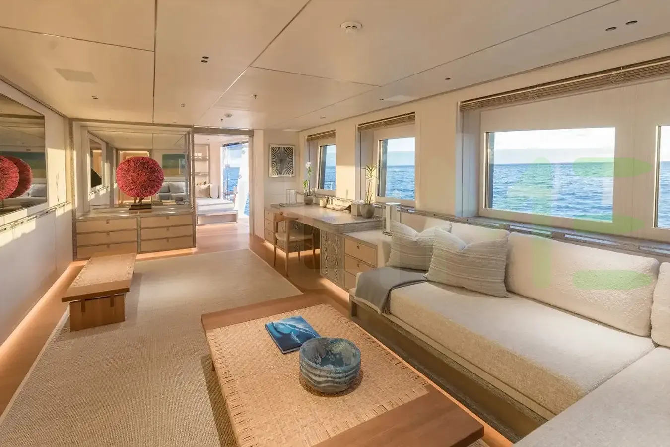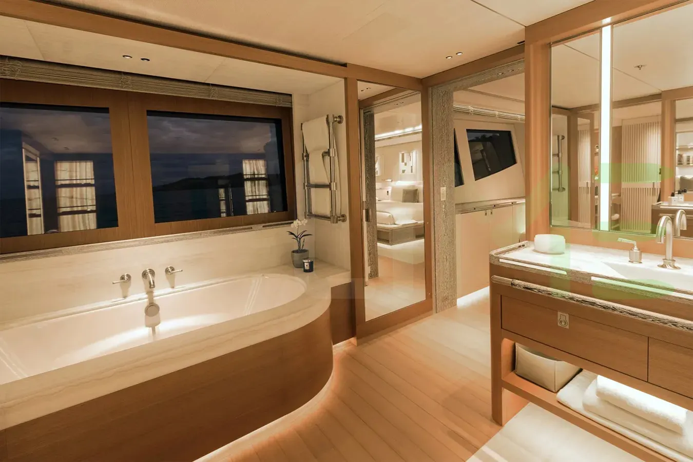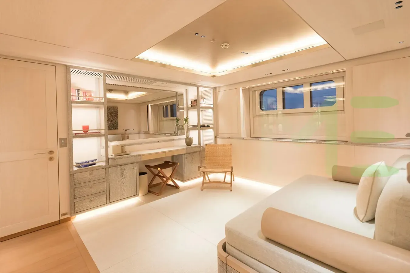 The styling of the DRIFTWOOD yacht features exterior design by Tim Heywood Design Ltd. and interior design by Rémi Tessier. Up to 12 guests can be accommodated on board the superyacht DRIFTWOOD in 5 staterooms. DRIFTWOOD also has accommodations for 13 crew members, including the yacht’s captain.