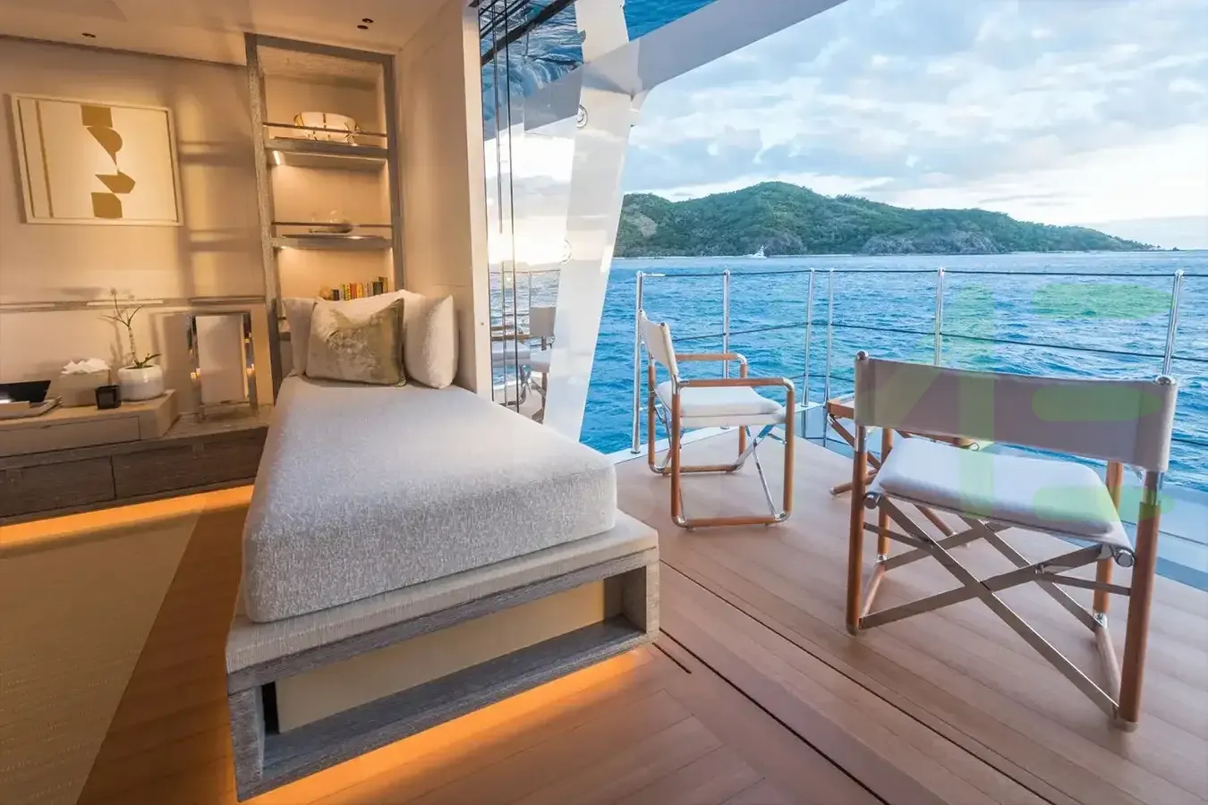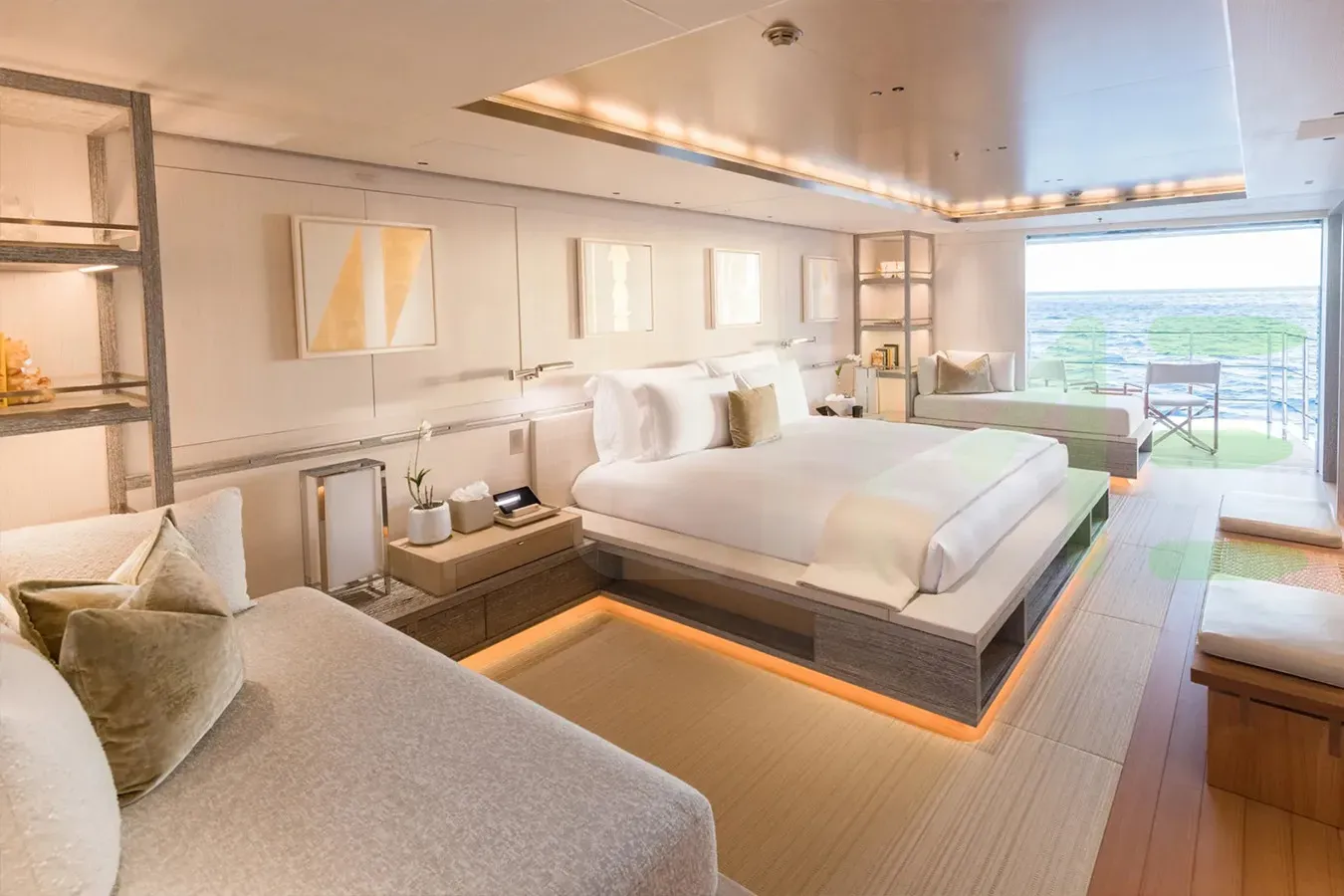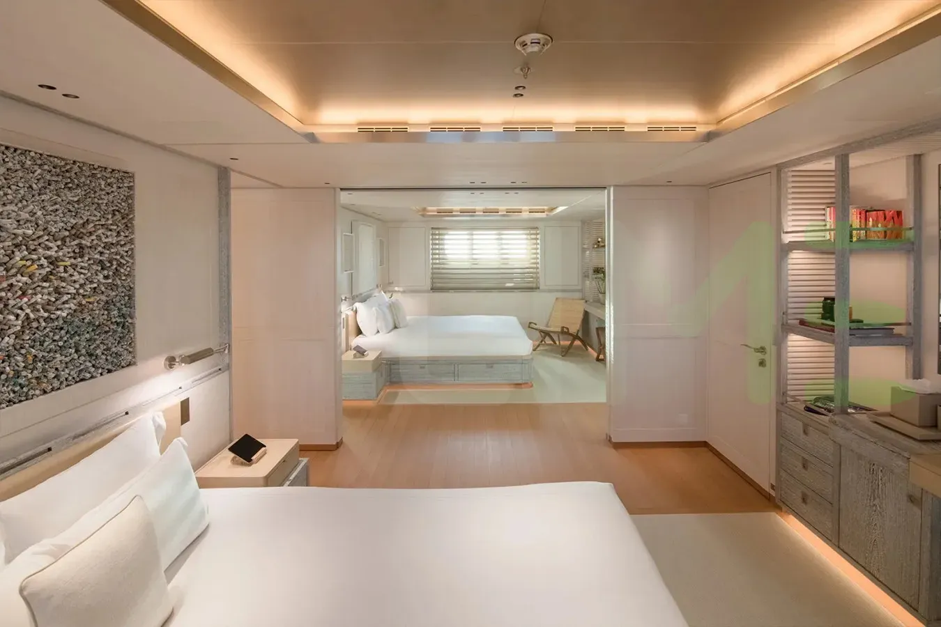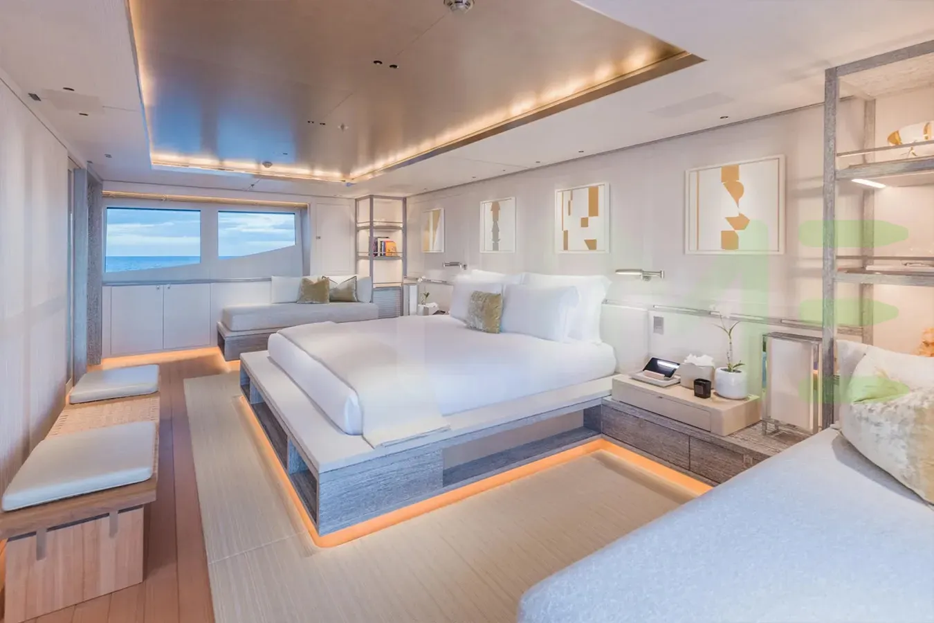 The styling of the DRIFTWOOD yacht features exterior design by Tim Heywood Design Ltd. and interior design by Rémi Tessier. Up to 12 guests can be accommodated on board the superyacht DRIFTWOOD in 5 staterooms. DRIFTWOOD also has accommodations for 13 crew members, including the yacht’s captain.
