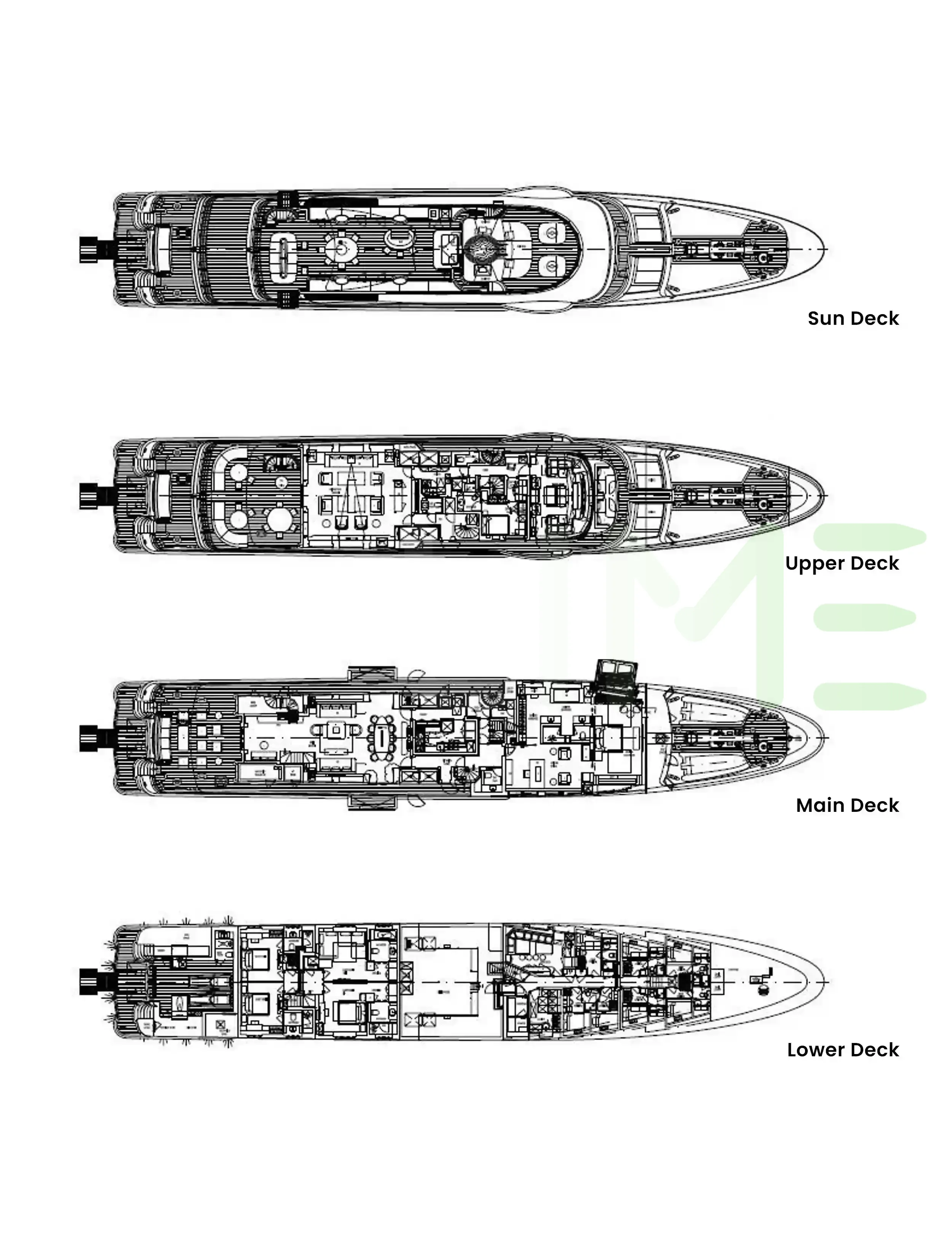 Request plans that include the layout of staterooms, guest areas, and outdoor spaces, as well as crew quarters and work areas.