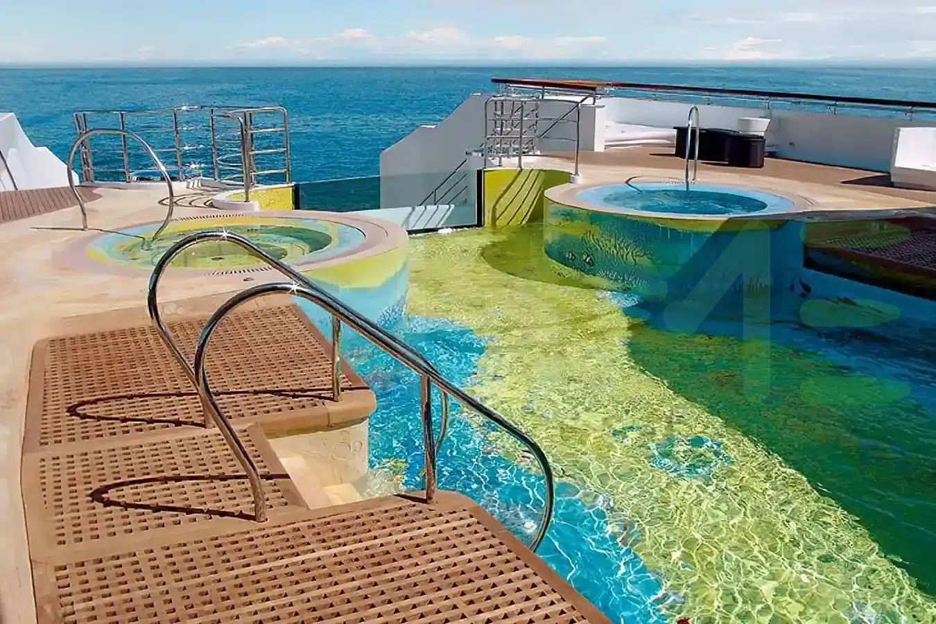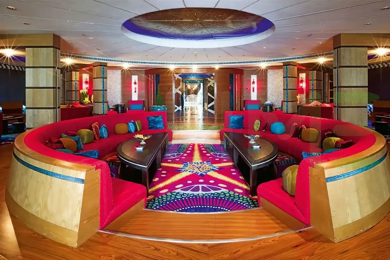 Her features include a dancefloor, spa, beauty salon, elevator and gym.