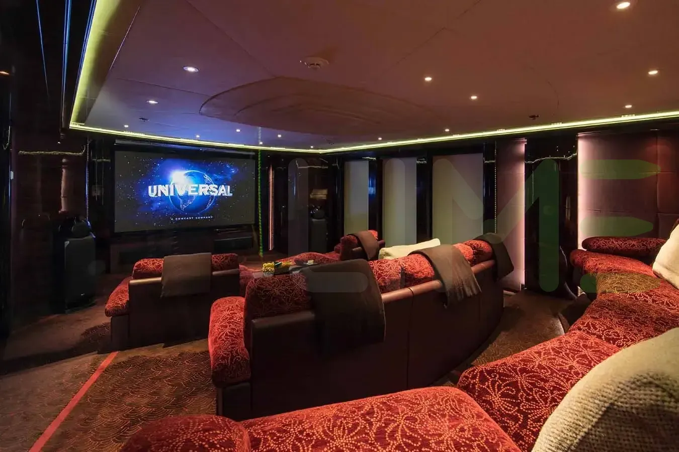 Her features include a movie theatre, beauty salon, elevator, underwater lights, gym and air conditioning.