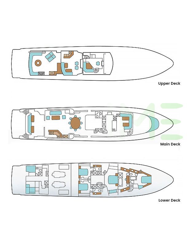 Request plans that include the layout of staterooms, guest areas, and outdoor spaces, as well as crew quarters and work areas.