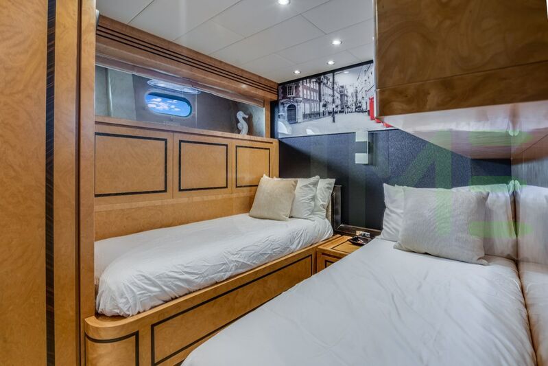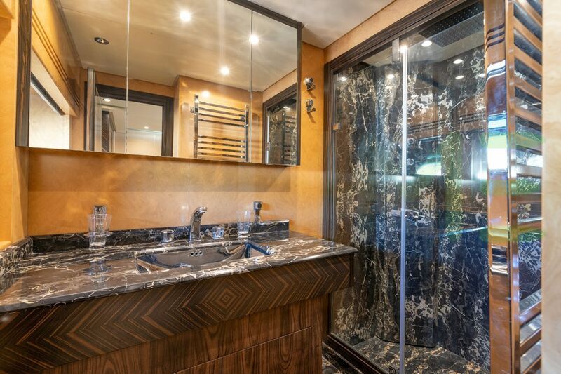 Up to 8 guests can be accommodated on board the superyacht ENCORE in 4 staterooms. ENCORE also has accommodations for 4 crew members, including the yacht’s captain.