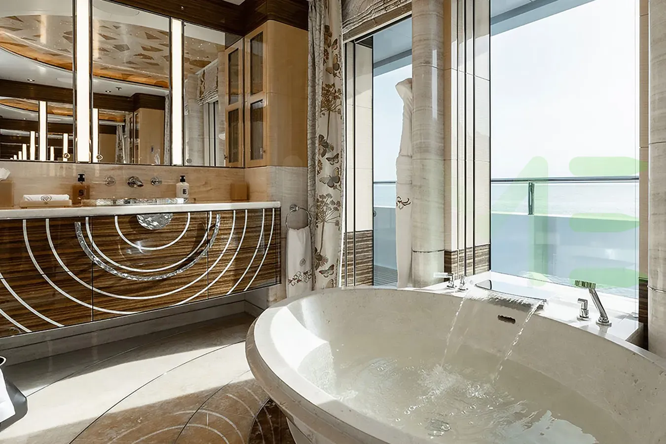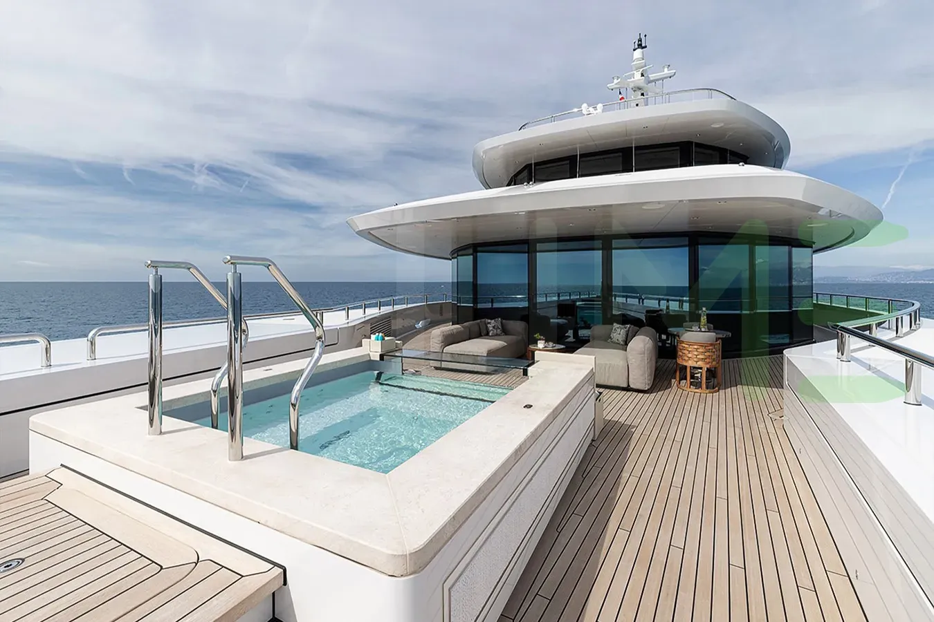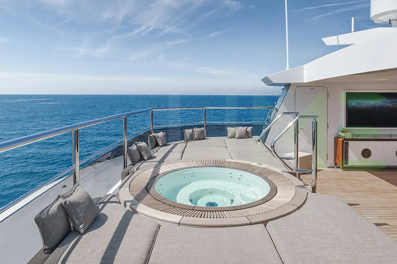 Her features include beauty salon, underwater lights, beach club, deck jacuzzi, WiFi and air conditioning.