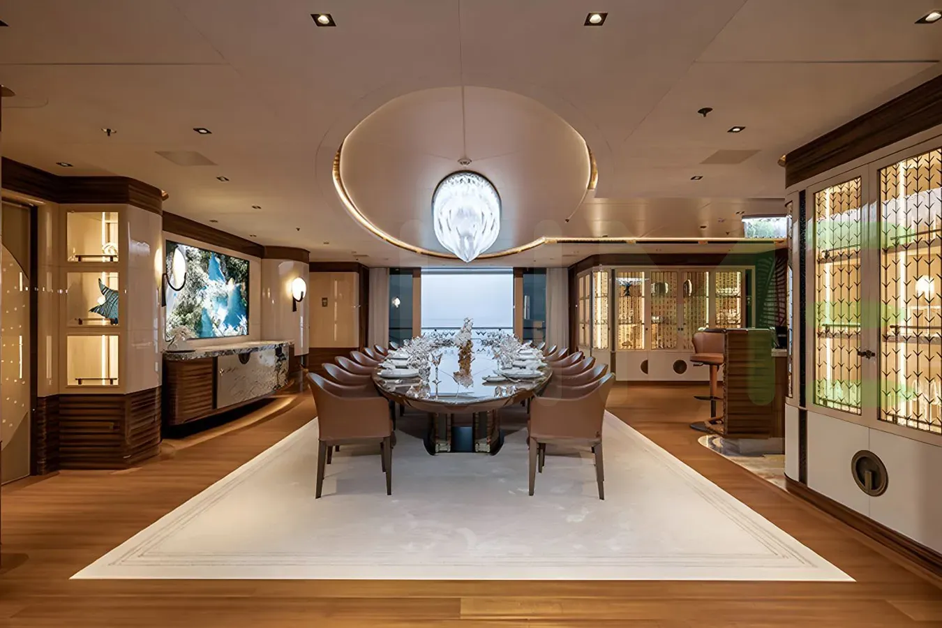 The styling of the ENERGY yacht features exterior design by Espen Øino International and interior design by Zuretti Interior Design. Up to 14 guests can be accommodated on board the superyacht ENERGY in 7 staterooms. ENERGY also has accommodations for 27 crew members, including the yacht’s captain.