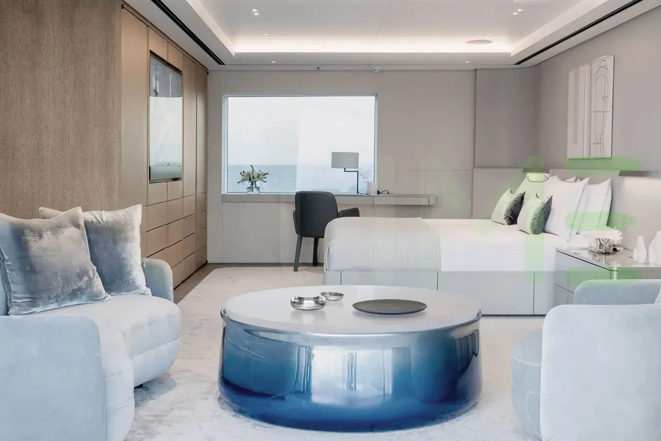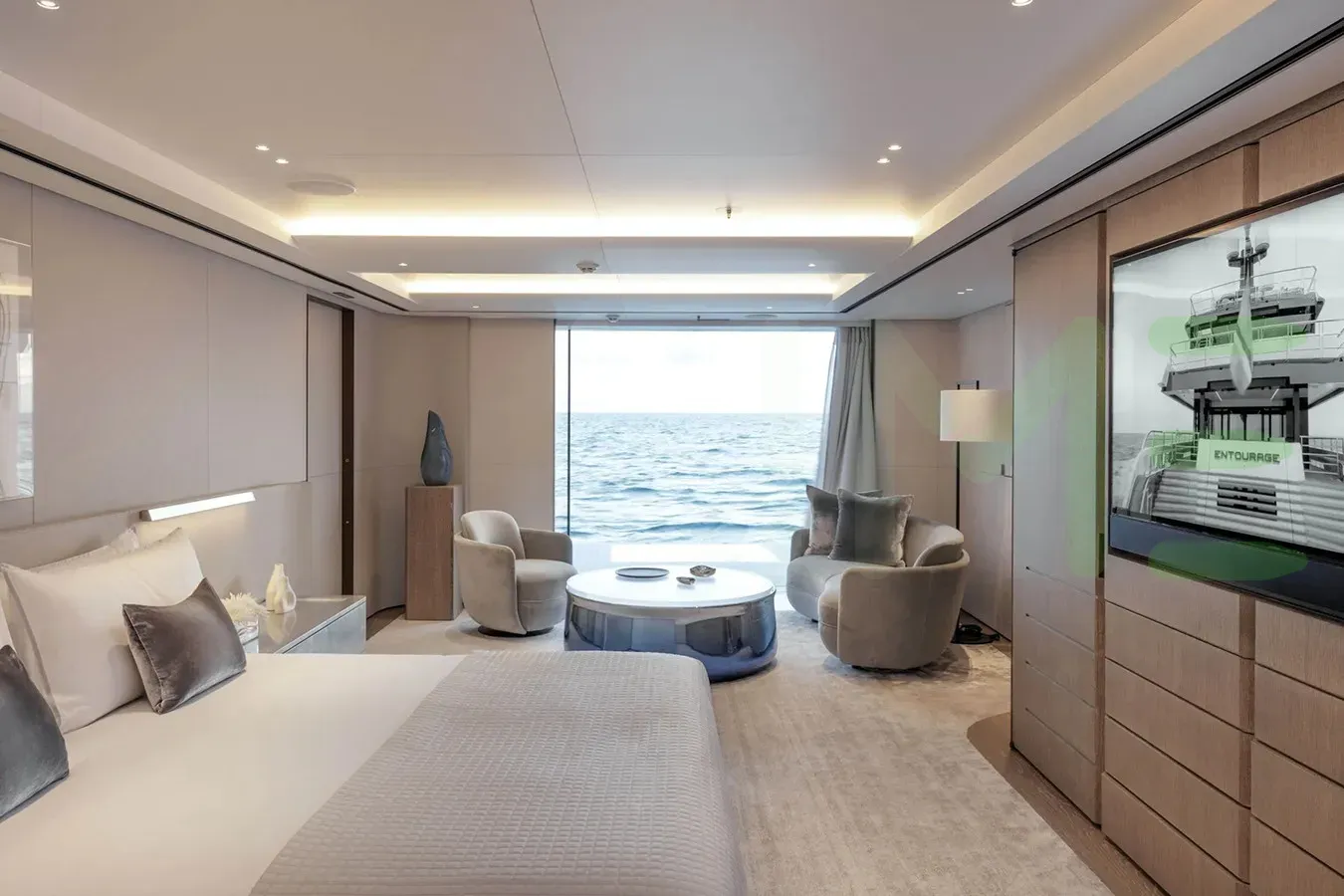 The styling of the ENTOURAGE yacht features exterior design by Espen Øino International and interior design by Burdifilek. Up to 12 guests can be accommodated on board the superyacht ENTOURAGE in 6 staterooms. ENTOURAGE also has accommodations for 12 crew members, including the yacht’s captain.