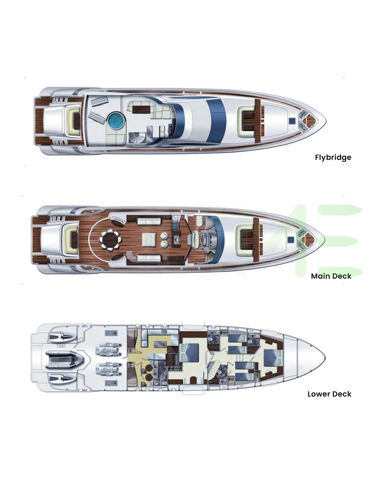 Request plans that include the layout of staterooms, guest areas, and outdoor spaces, as well as crew quarters and work areas.