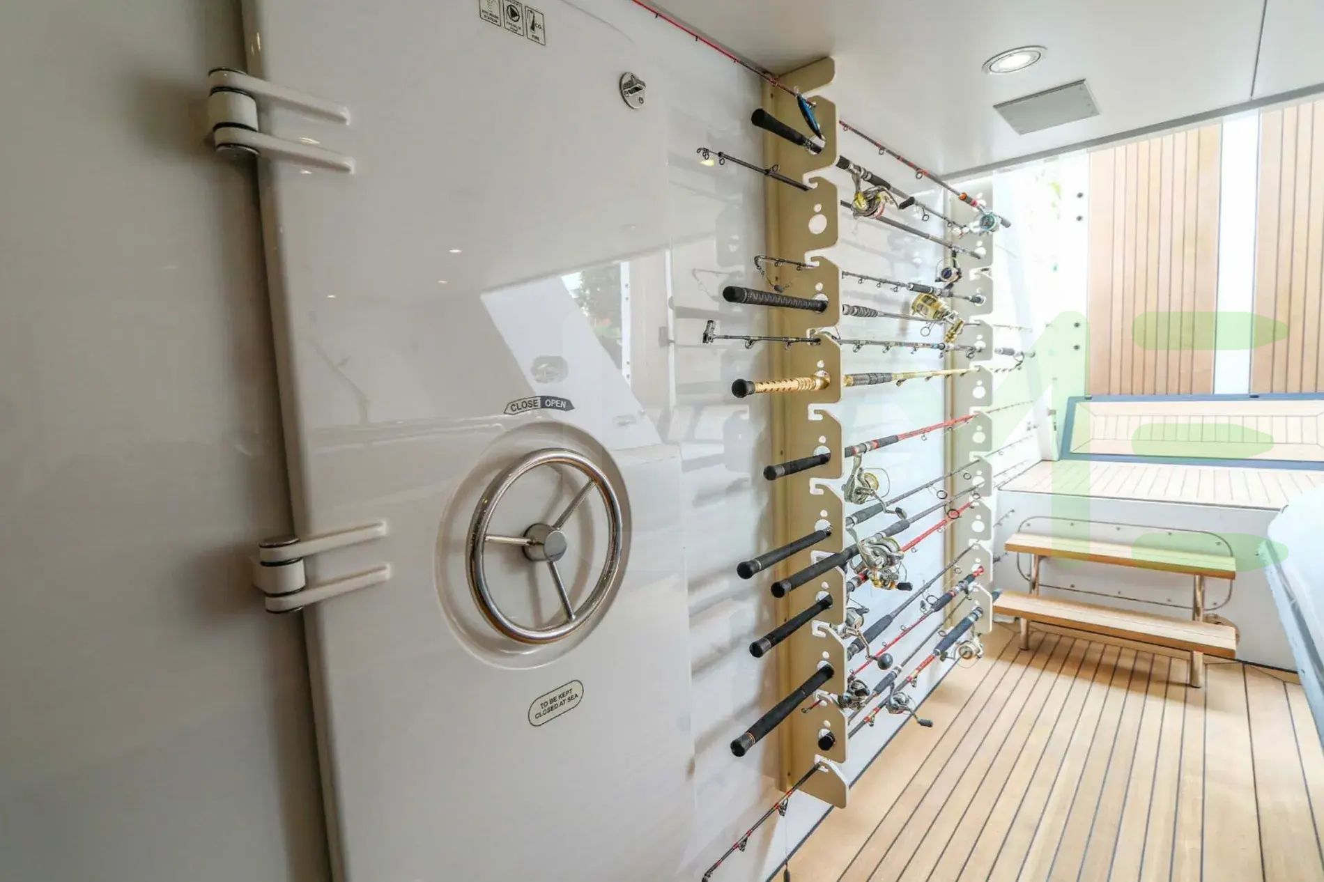 Her features include underwater lights, deck jacuzzi, WiFi and air conditioning.