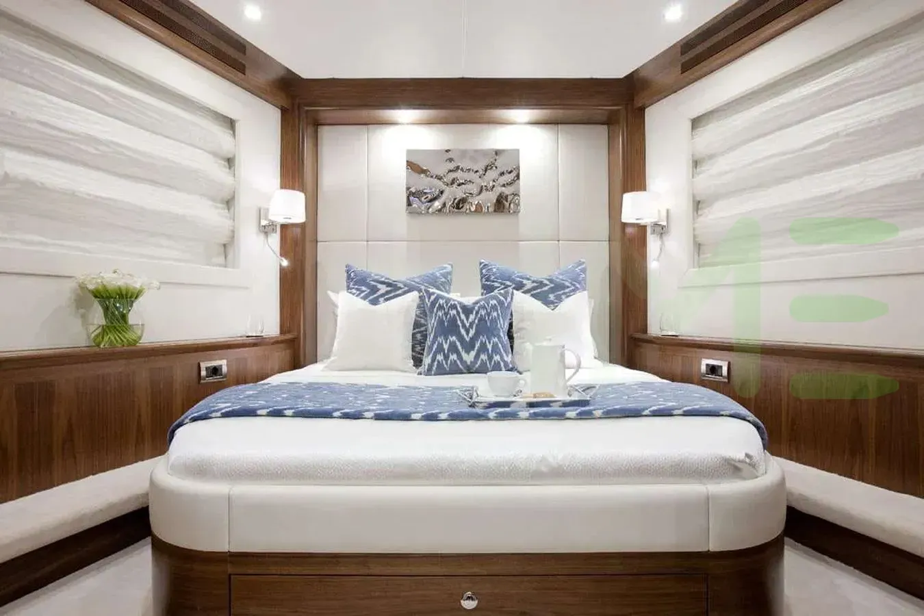 The styling of the FIREFLY yacht features exterior design by Omega Architects and interior design by Vripack, Vickers Studio. Up to 8 guests can be accommodated on board the superyacht FIREFLY in 4 staterooms. FIREFLY also has accommodations for 4 crew members, including the yacht’s captain.