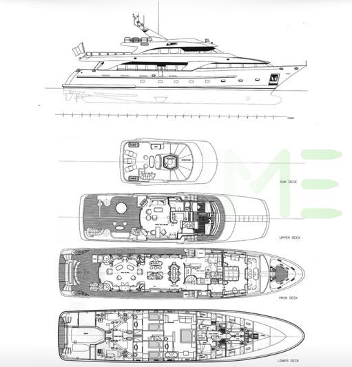Request plans that include the layout of staterooms, guest areas, and outdoor spaces, as well as crew quarters and work areas.