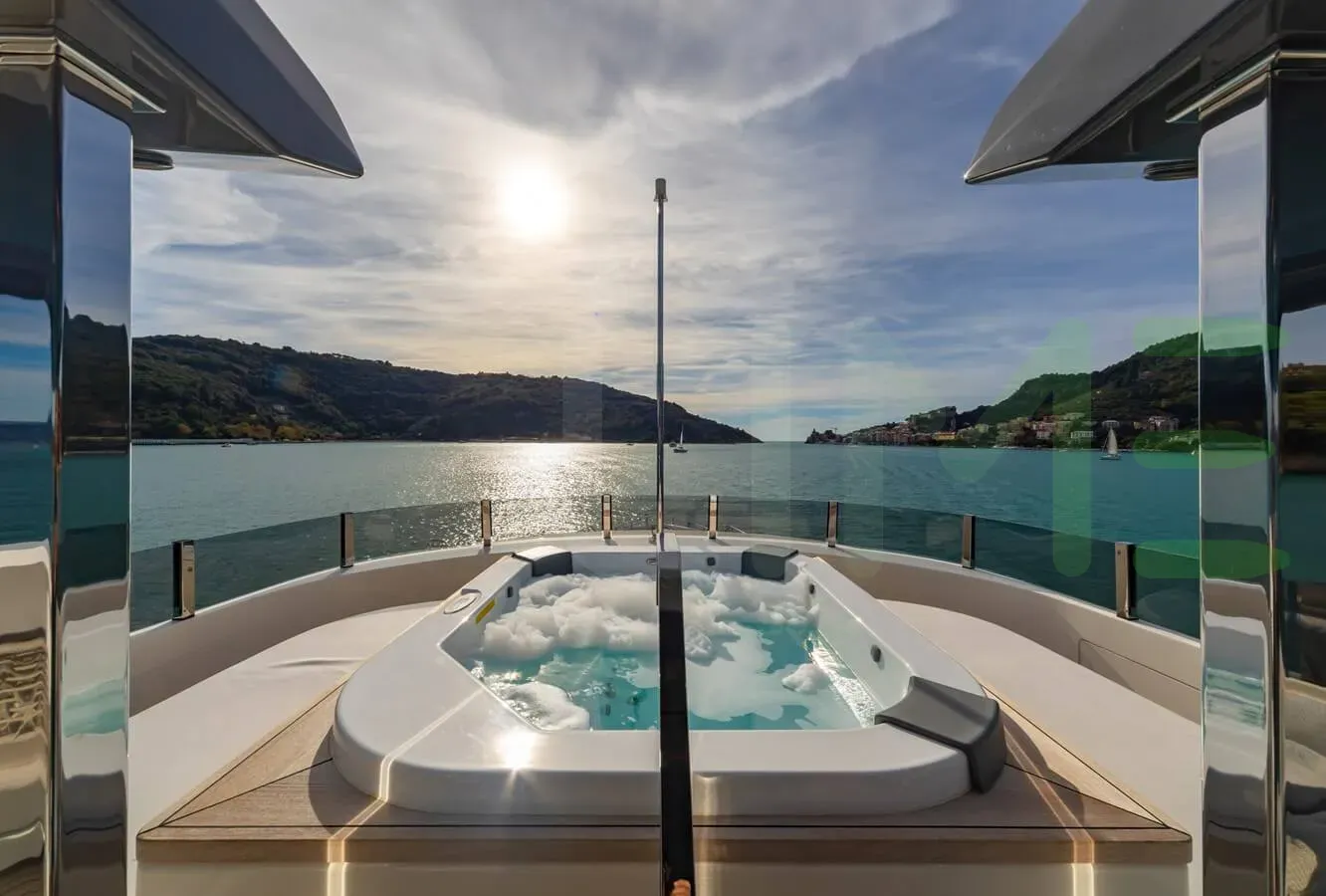 Her features include underwater lights, deck jacuzzi, WiFi and air conditioning.