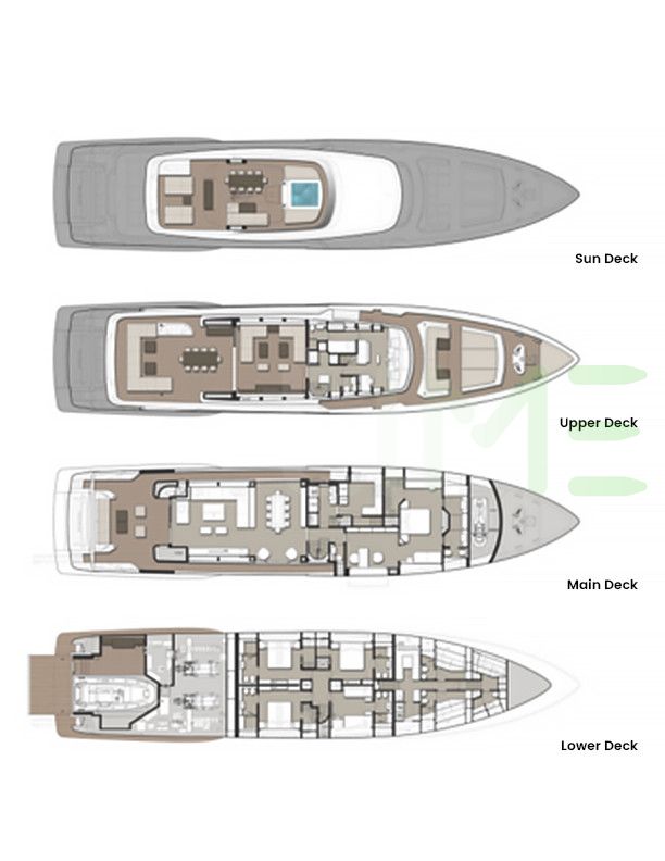Request plans that include the layout of staterooms, guest areas, and outdoor spaces, as well as crew quarters and work areas.