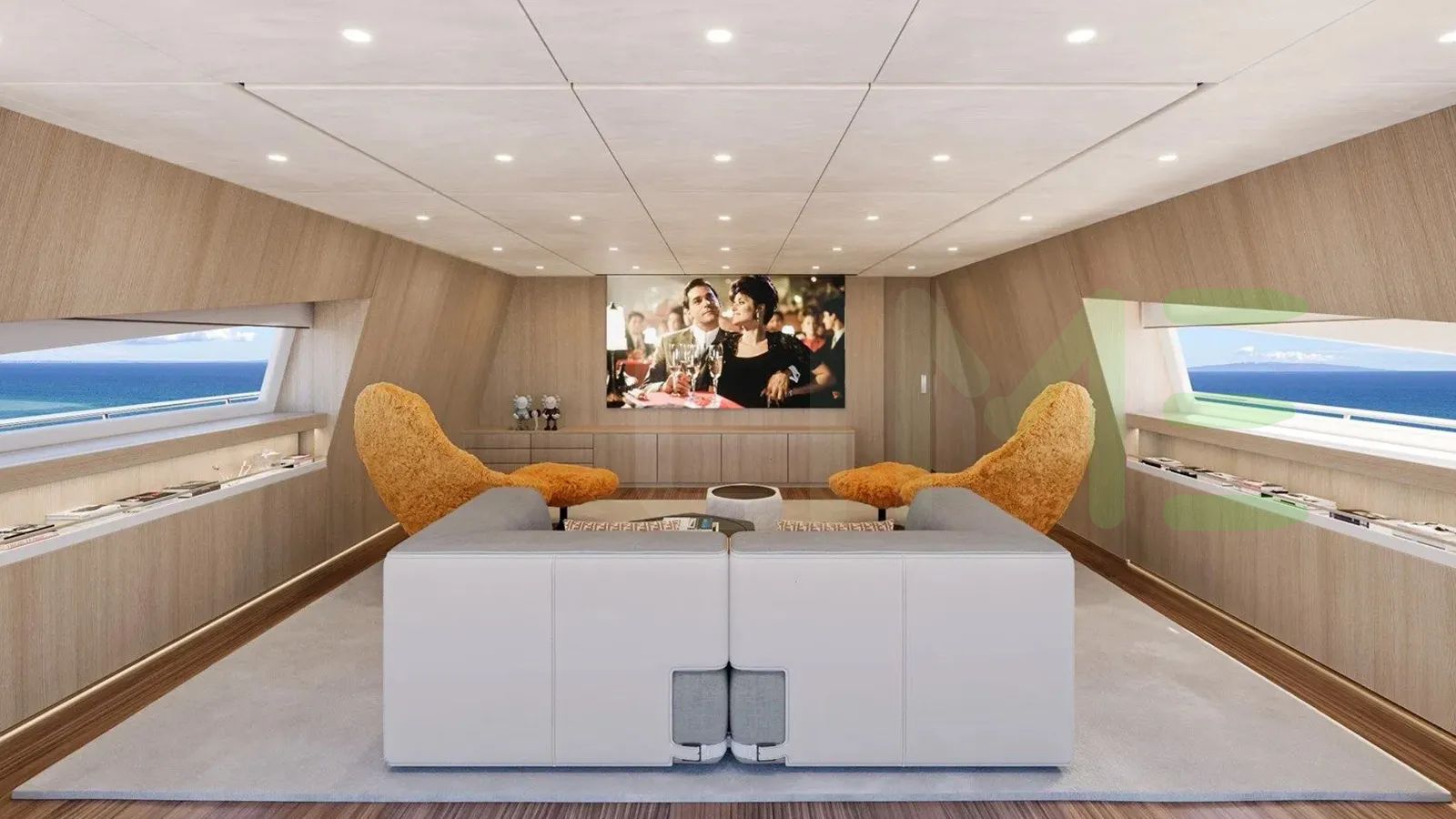 The styling of the FRANKLIE yacht features exterior design by Fulvio De Simoni Yacht Design and interior design by Unvarnished. FRANKLIE also has accommodations for 7 crew members, including the yacht’s captain.