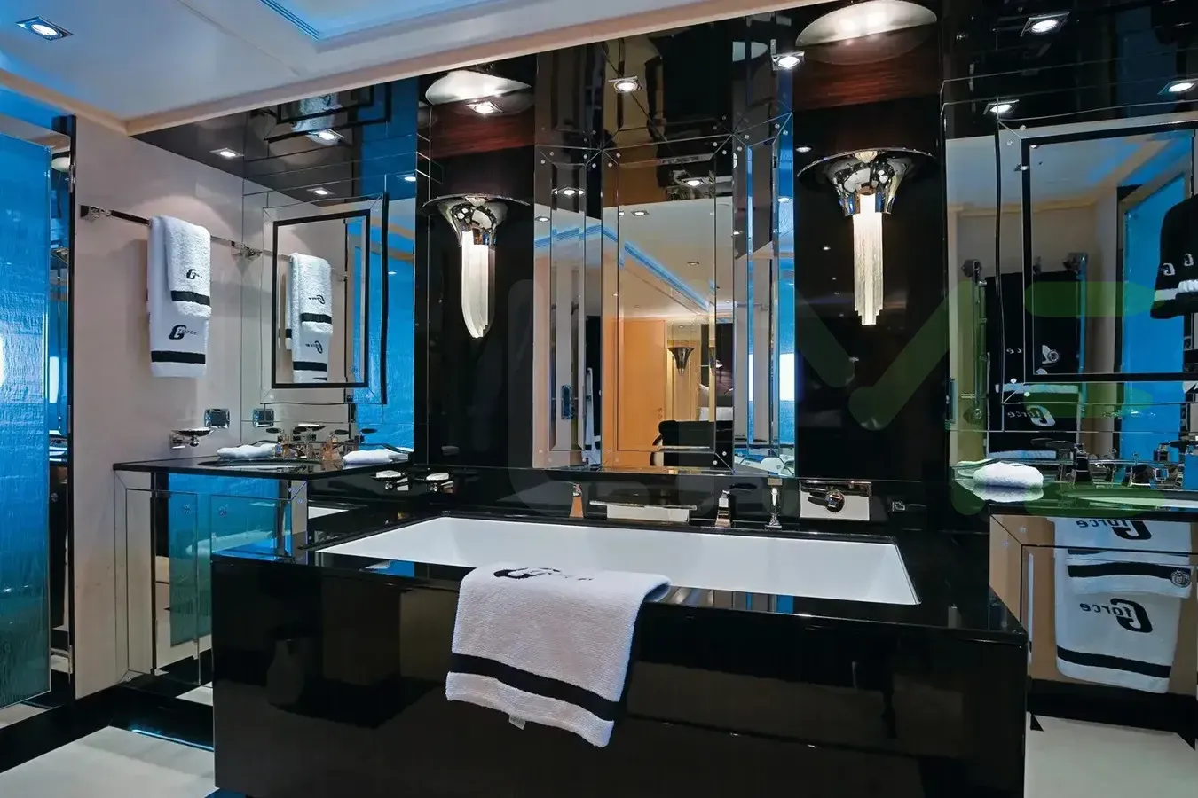 The styling of the G FORCE yacht features exterior design by Omega Architects and interior design by Gilardino Interior Design. Up to 10 guests can be accommodated on board the superyacht G FORCE in 5 staterooms. G FORCE also has accommodations for 6 crew members, including the yacht’s captain.