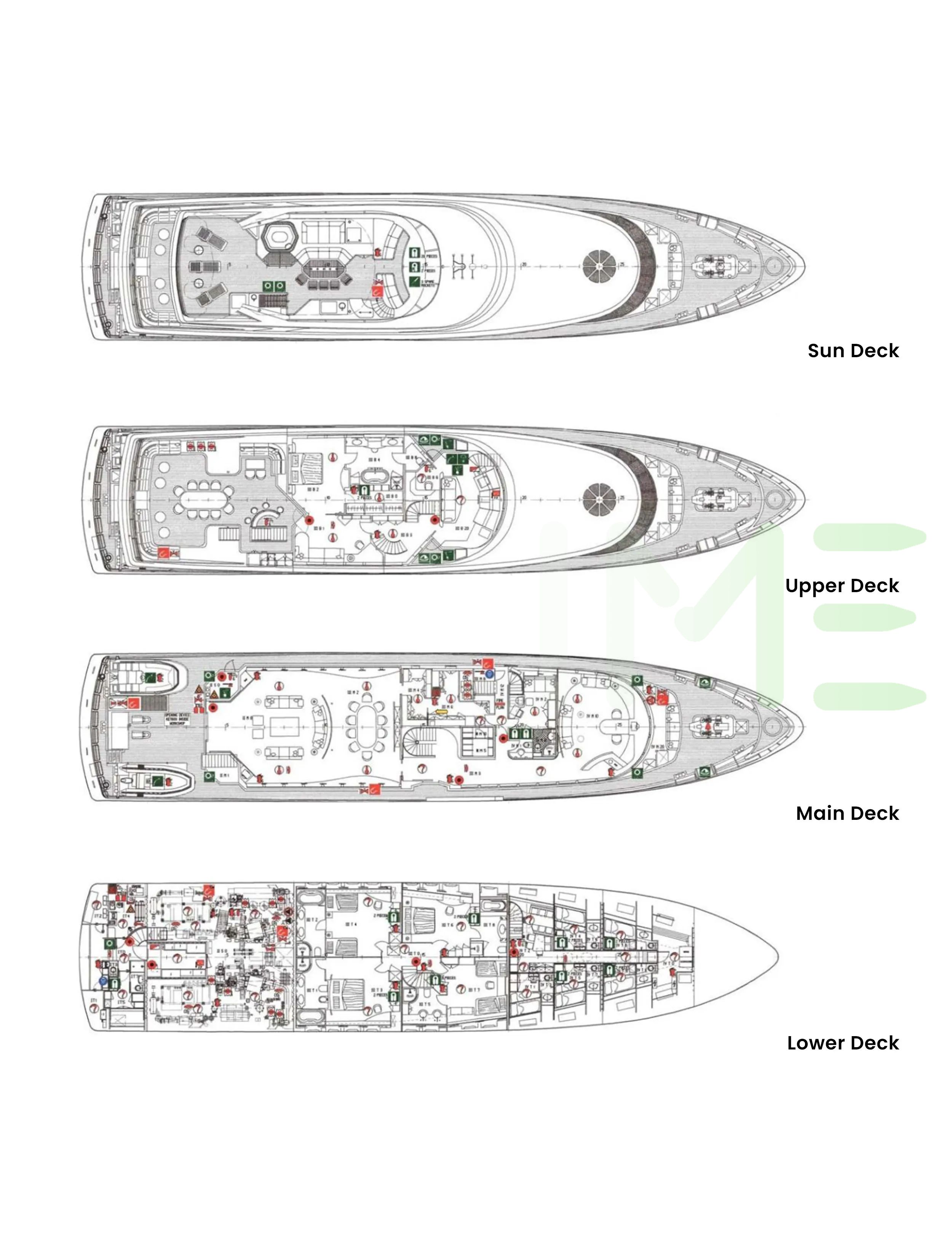 Request plans that include the layout of staterooms, guest areas, and outdoor spaces, as well as crew quarters and work areas.