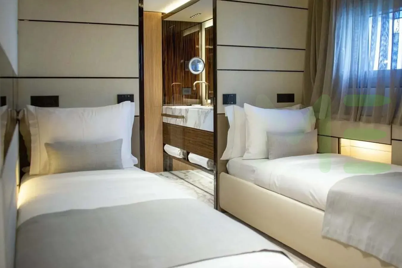 The styling of the GECO yacht features exterior design by Gian Marco Companino Design, Admiral and interior design by Admiral, Gian Marco Companino Design. Up to 12 guests can be accommodated on board the superyacht GECO in 6 staterooms. GECO also has accommodations for 13 crew members, including the yacht’s captain.
