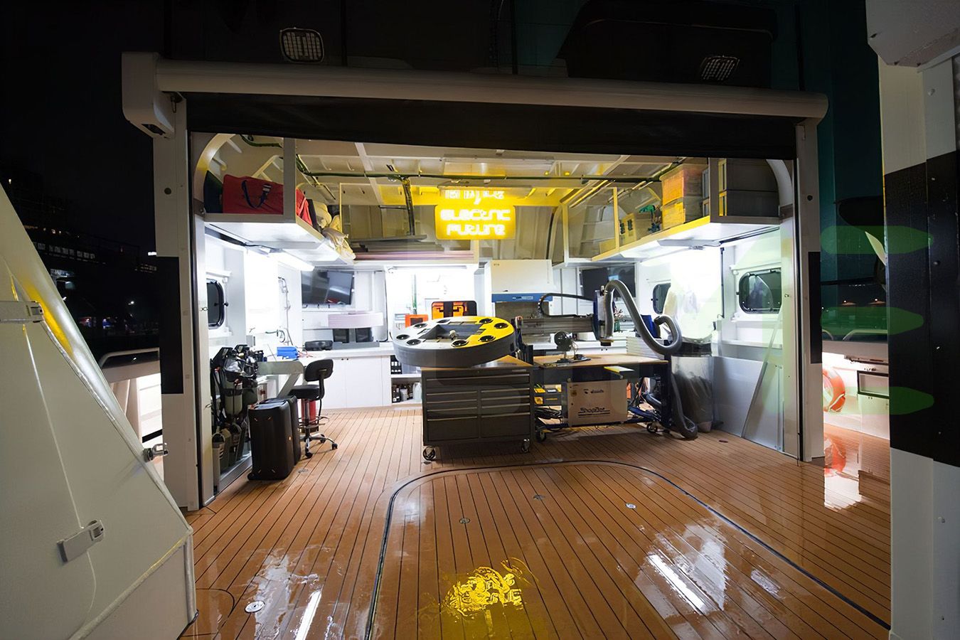 Measuring in at a length of 182' 1" (55.5m) and boasting a beam of 30' 4" (9.25m), GENE CHASER's grandeur is matched only by her spaciousness. Her draft of 8' 8" (2.65m) allows for an interior volume of 499 GRT (gross registered tons) which contributes to her exceptional performance on the open ocean.
