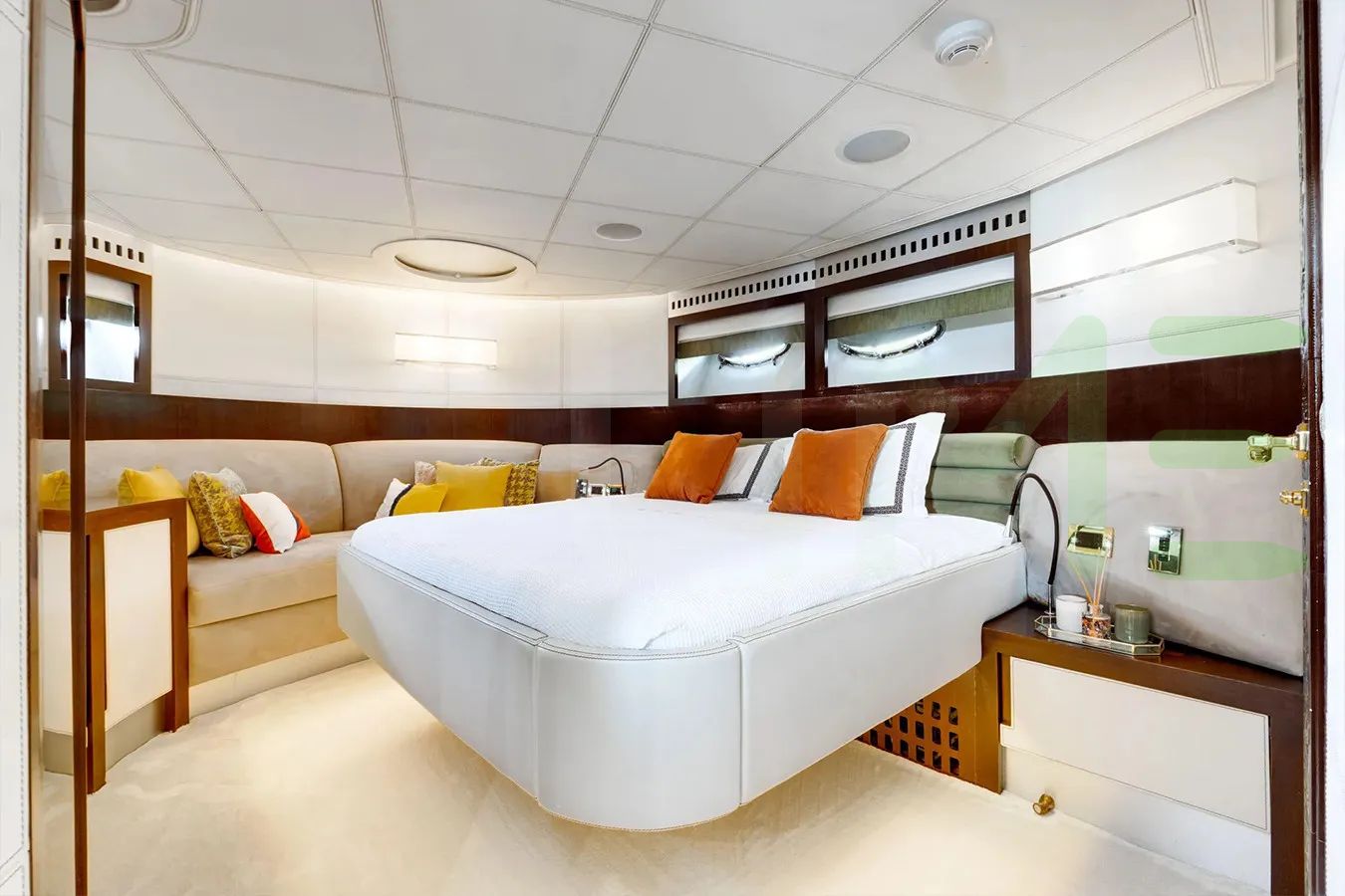 Up to 8 guests can be accommodated on board the superyacht GINGER in 4 staterooms. GINGER also has accommodations for 5 crew members, including the yacht’s captain.