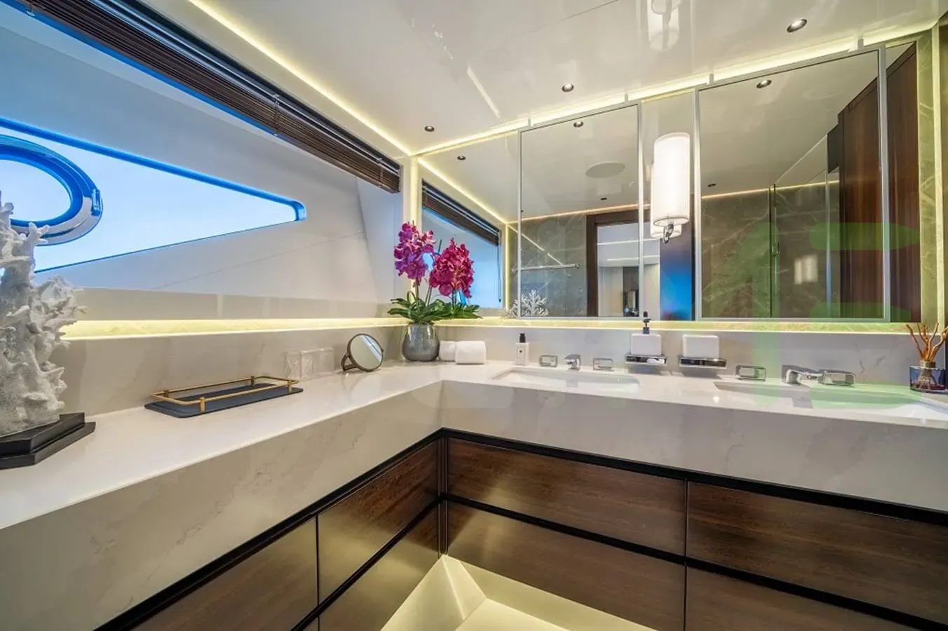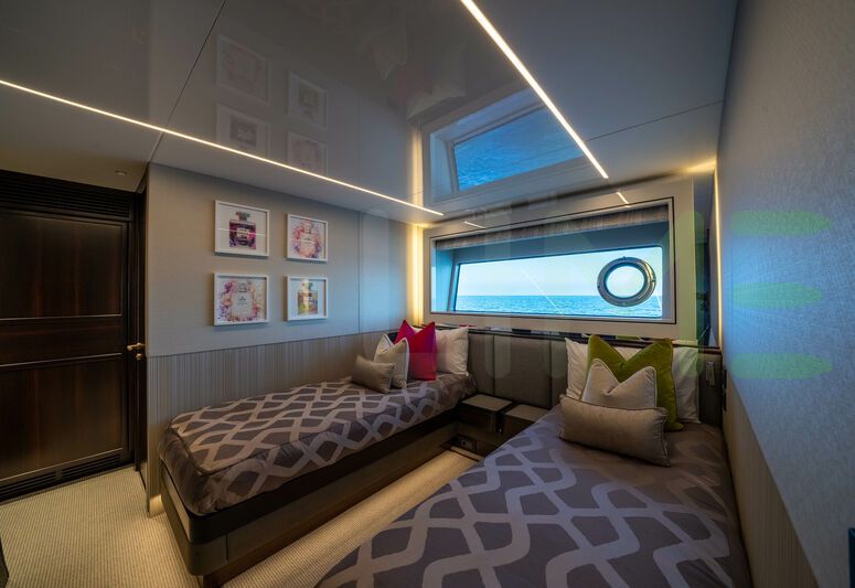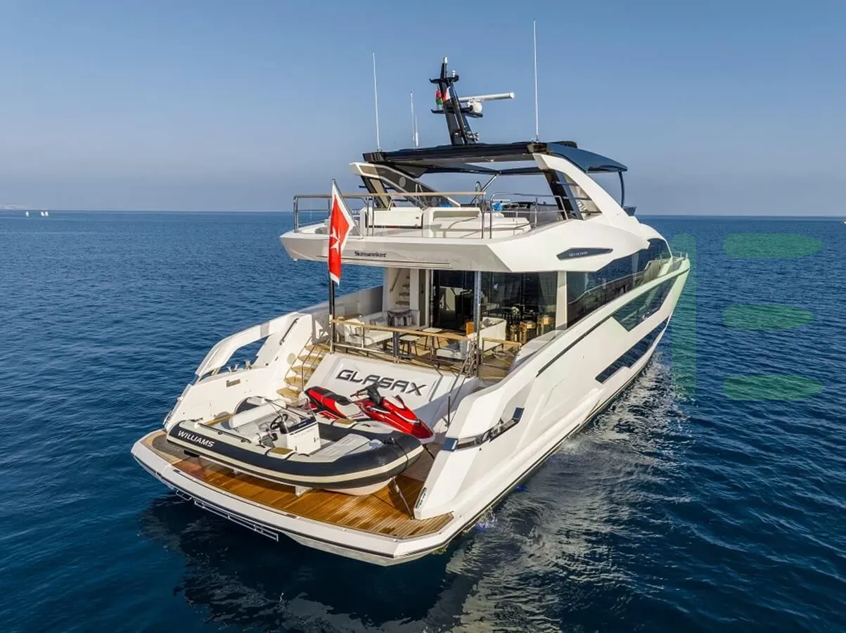 The styling of the GLASAX yacht features exterior design by Sunseeker and interior design by Sunseeker. GLASAX also has accommodations for 4 crew members, including the yacht’s captain.
