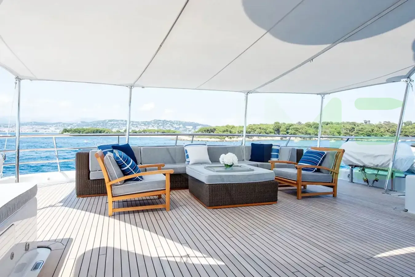 Keeping comfortable and entertained on Grace is easy thanks to the available amenities, notably a deck jacuzzi, perfect to enjoy the scenery with your favourite drink in hand.