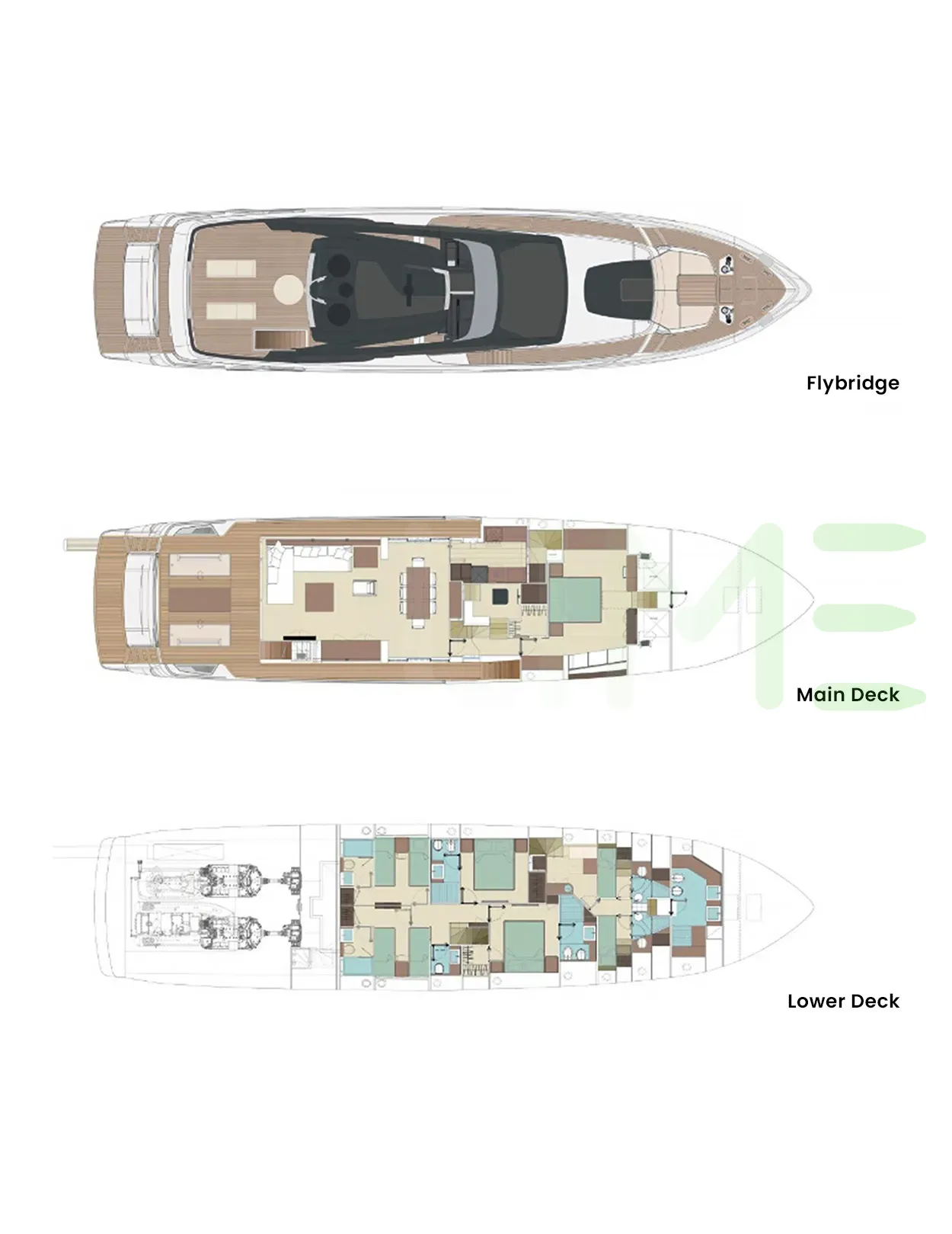Request plans that include the layout of staterooms, guest areas, and outdoor spaces, as well as crew quarters and work areas.