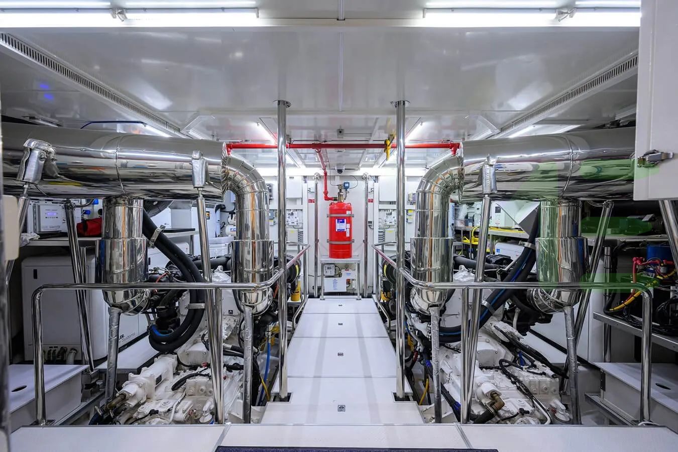 Powered by two Caterpillar main engines, each generating 1,361 horsepower, for a total combined output of 2,722 horsepower. Notably, the HAPPY HOUR yacht is one of 2,664 yachts greater than 65’(19m) with Caterpillar engines.