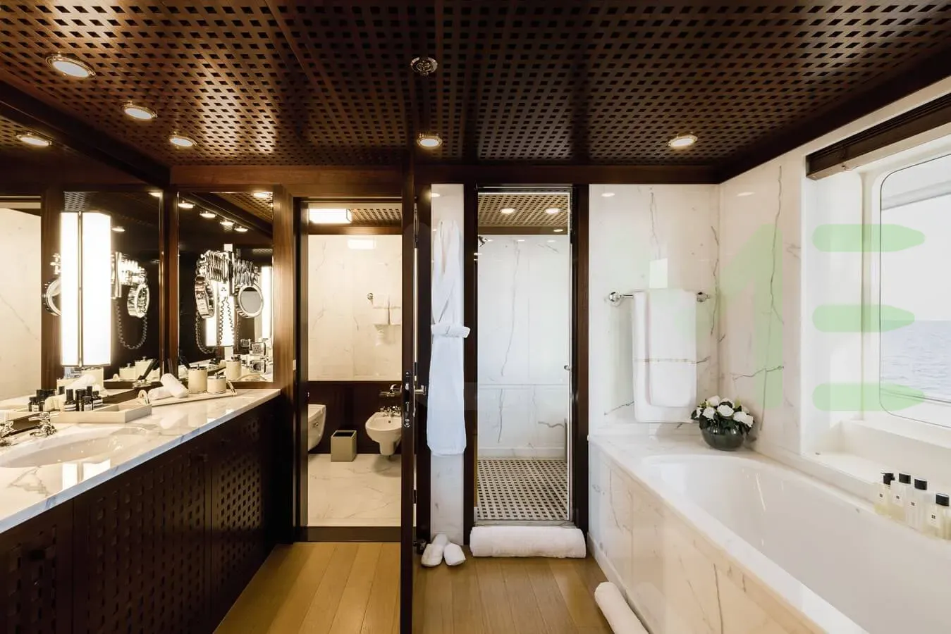 The styling of the HBC yacht features exterior design by Reymond Langton Design Ltd. and interior design by Reymond Langton Design Ltd., Winch Design. Up to 22 guests can be accommodated on board the superyacht HBC in 11 staterooms. HBC also has accommodations for 28 crew members, including the yacht’s captain.