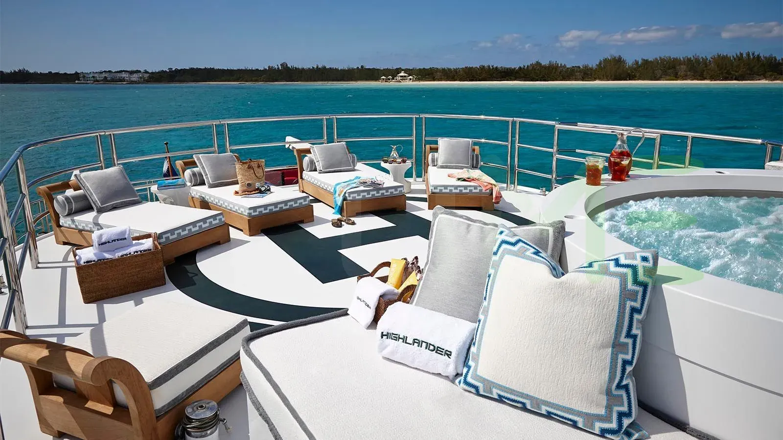 You and your guests can enjoy a variety of experiences on Highlander, notably a dancefloor where you and your guests can celebrate in style. Meanwhile Highlander boasts a movie theatre, perfect to relax after a long day on the water. Take the opportunity to be thoroughly pampered and indulged in the spa and in addition a gym with all the latest equipment is available for a good work out. Sit back with a glass of champagne in the deck jacuzzi.