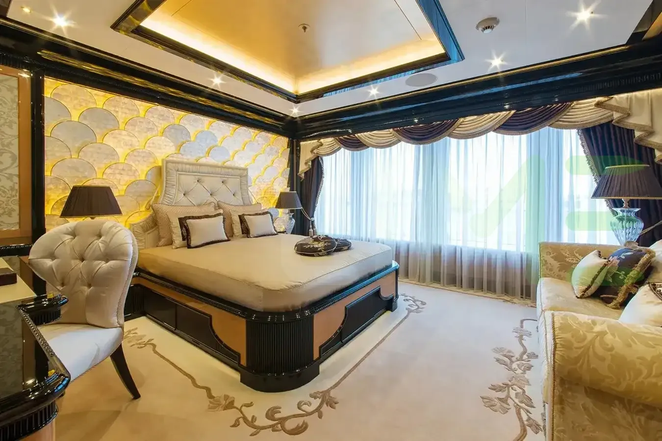 Her features include a beauty salon, beauty salon, elevator, underwater lights, beach club and air conditioning.