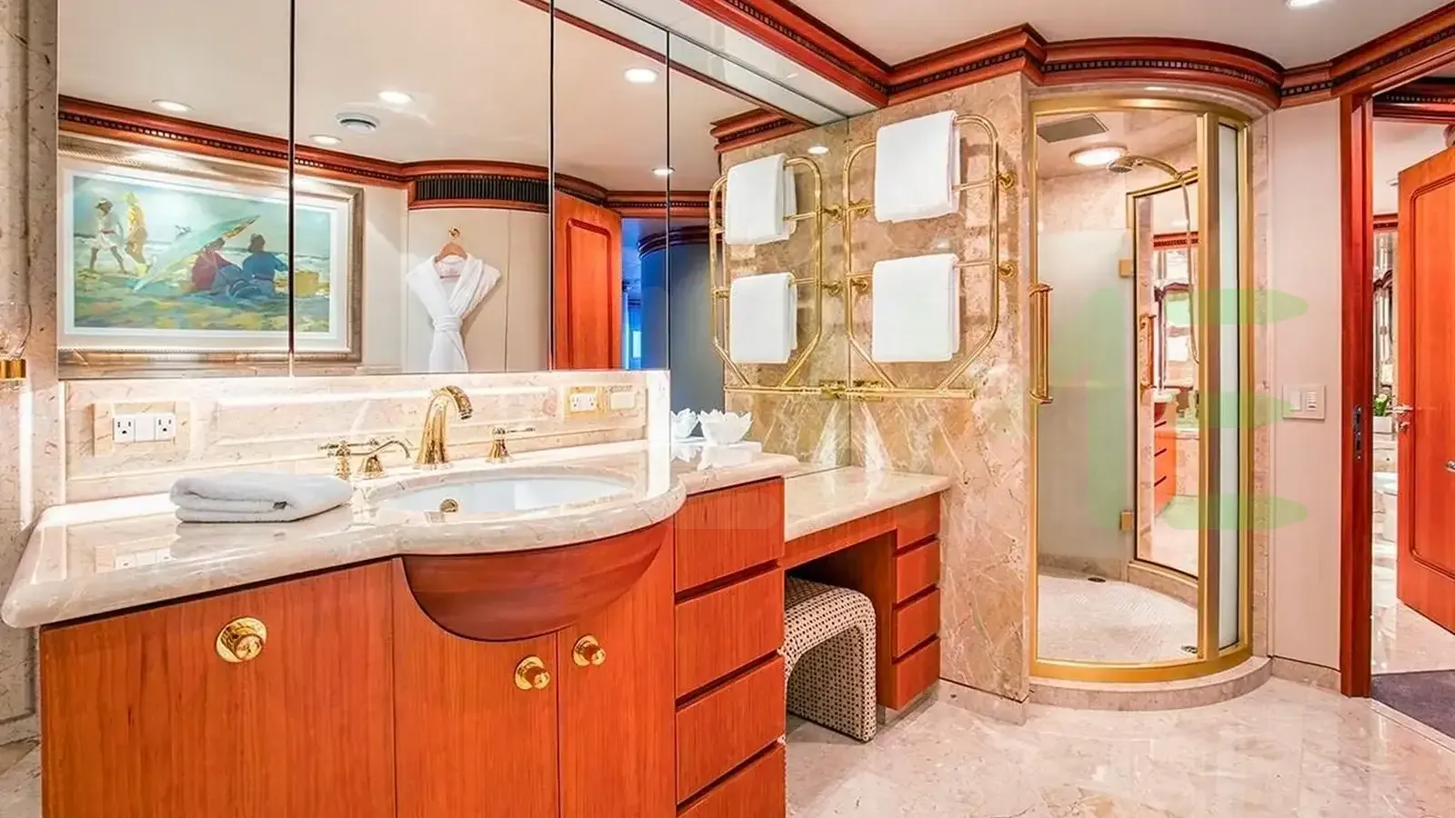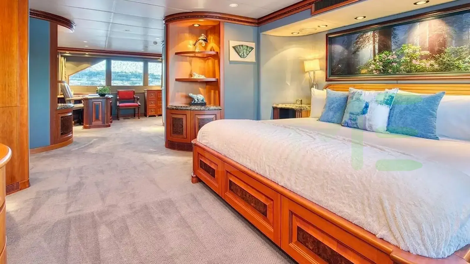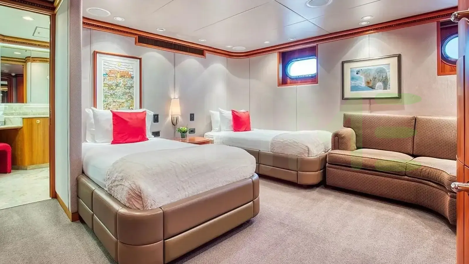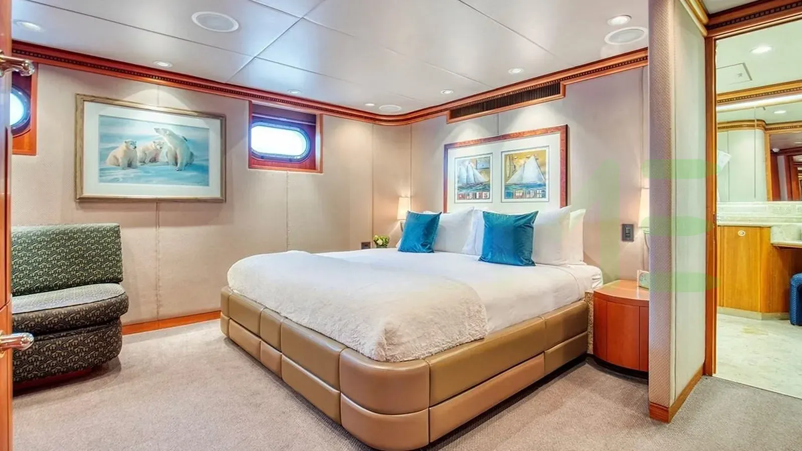 The styling of the ICE BEAR yacht features exterior design by De Voogt Naval Architects and interior design by Paola D. Smith & Associates. Up to 10 guests can be accommodated on board the superyacht ICE BEAR in 5 staterooms. ICE BEAR also has accommodations for 11 crew members, including the yacht’s captain.