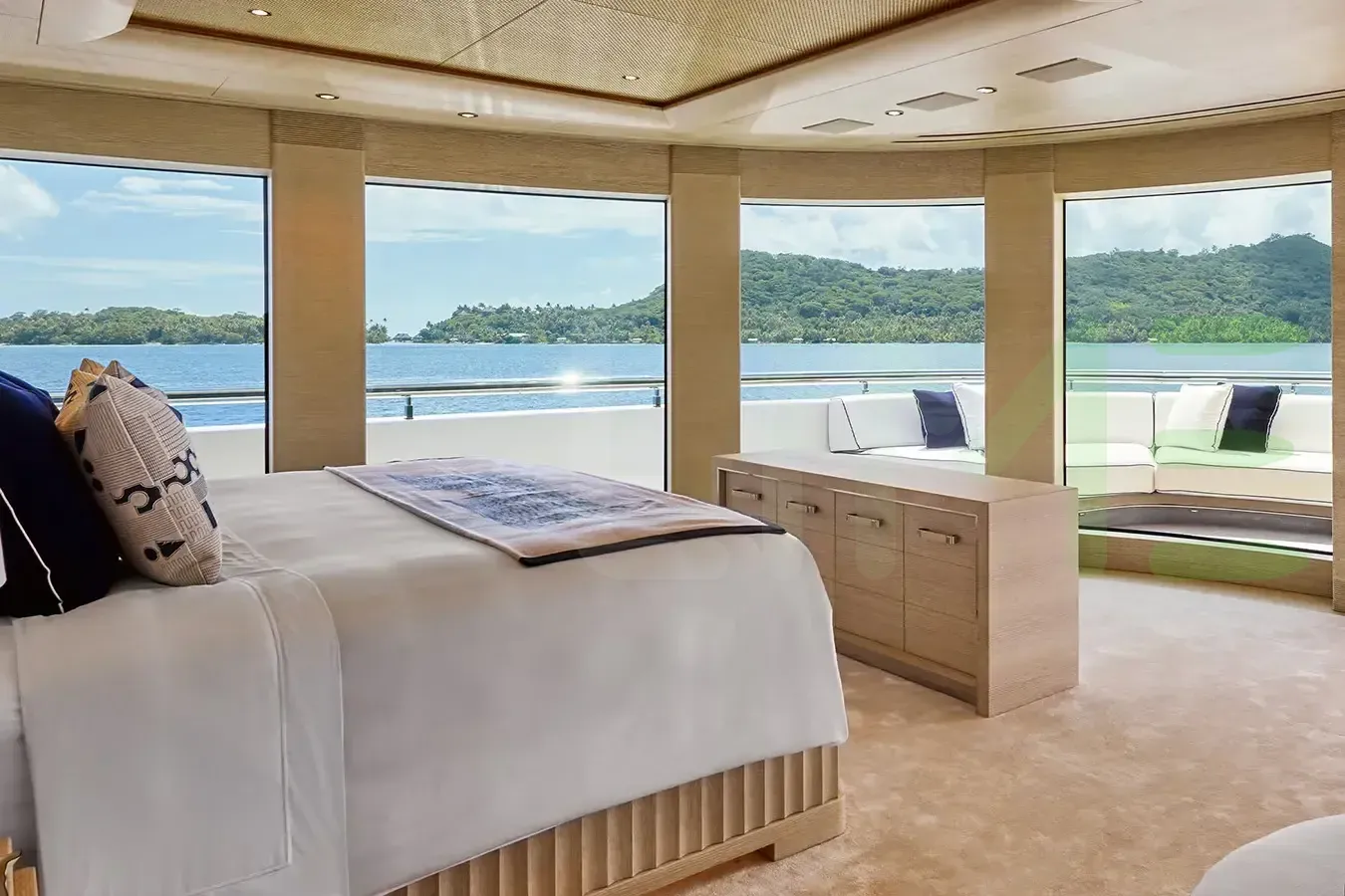 The styling of the IJE yacht features exterior design by RWD and interior design by Benetti SpA. Up to 22 guests can be accommodated on board the superyacht IJE in 11 staterooms. IJE also has accommodations for 28 crew members, including the yacht’s captain.
