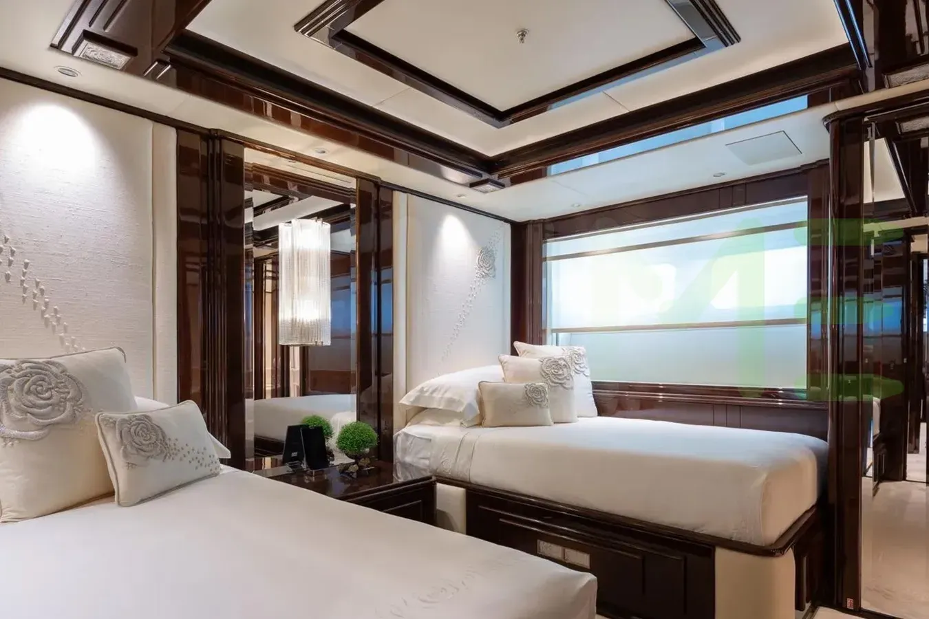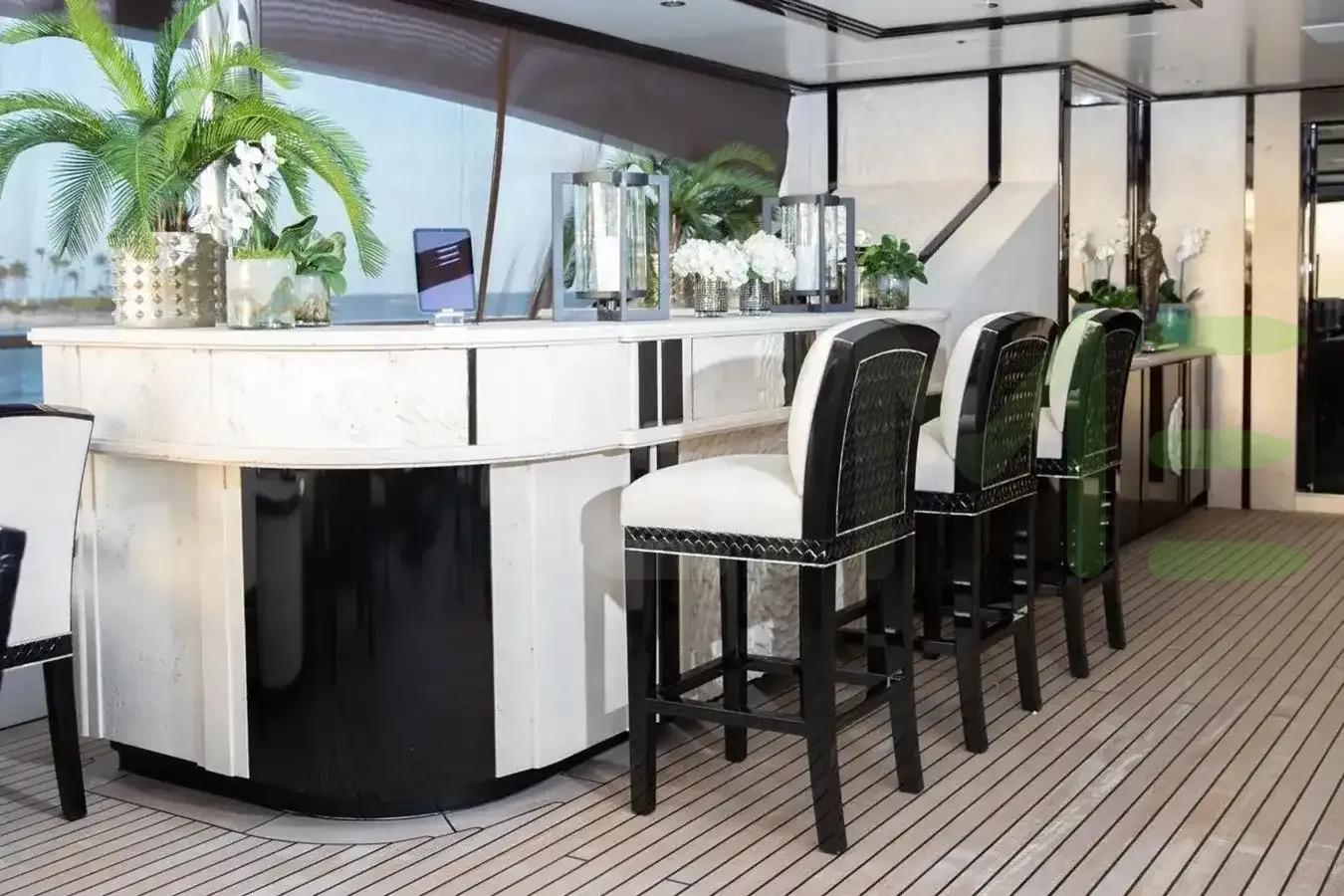 The styling of the ILLUSION V yacht features exterior design by Benetti SpA and interior design by Green & Mingarelli Design. Up to 12 guests can be accommodated on board the superyacht ILLUSION V in 6 staterooms. ILLUSION V also has accommodations for 13 crew members, including the yacht’s captain.