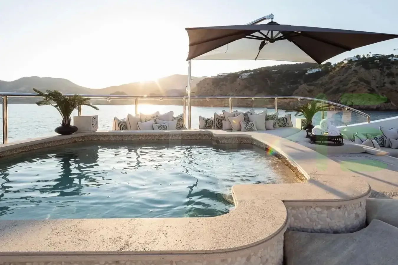 A charter on Illusion V is comfortable and convenient thanks to the provided amenities such as a beach club for you to relax on the edge of the water. Maintain your fitness routine and work out in the well-equipped gym or sit back with a glass of champagne in the deck jacuzzi.