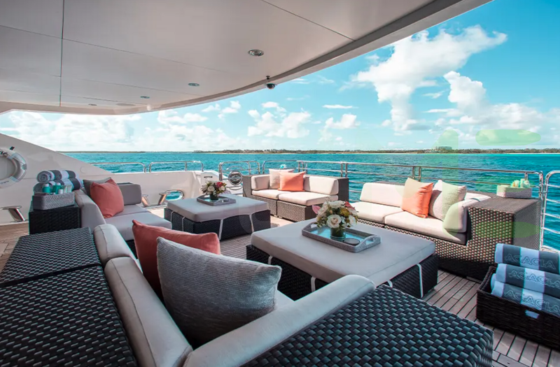 On your charter, you'll find plenty to keep you busy and entertained, notably a deck jacuzzi, perfect to enjoy the scenery with your favourite drink in hand.