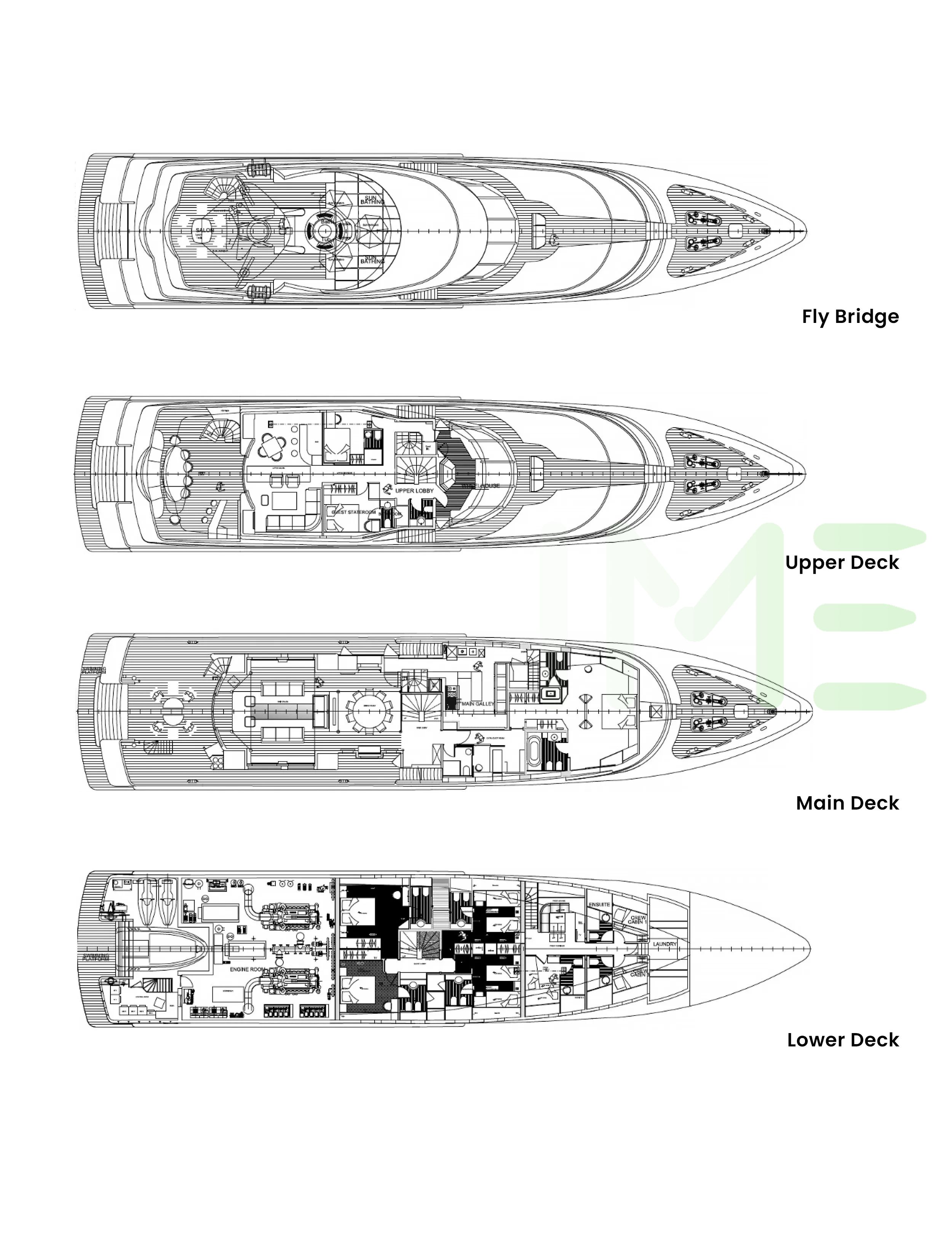 Request plans that include the layout of staterooms, guest areas, and outdoor spaces, as well as crew quarters and work areas.