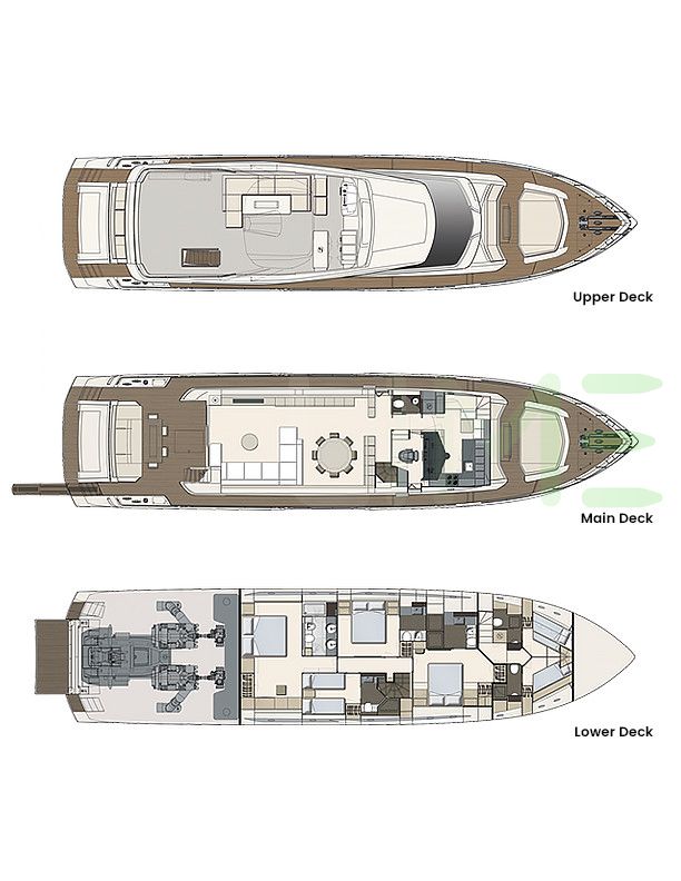 Request plans that include the layout of staterooms, guest areas, and outdoor spaces, as well as crew quarters and work areas.