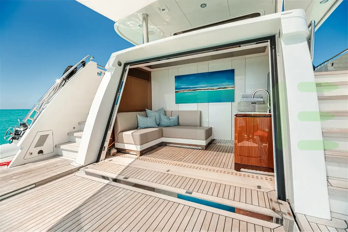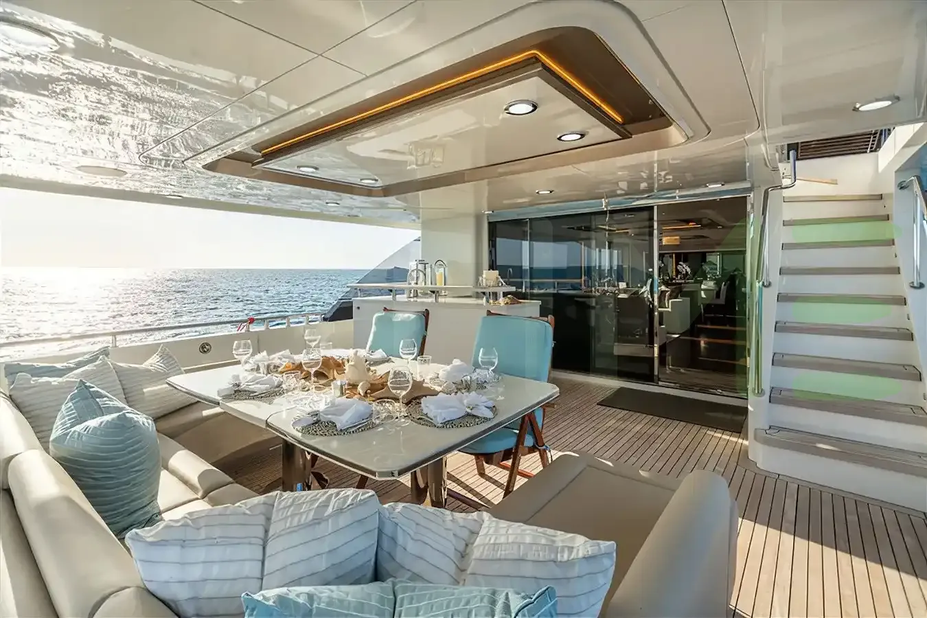 On your charter, you'll find plenty to keep you busy and entertained, notably a beach club for you to relax on the edge of the water. Sit back with a glass of champagne in the deck jacuzzi.