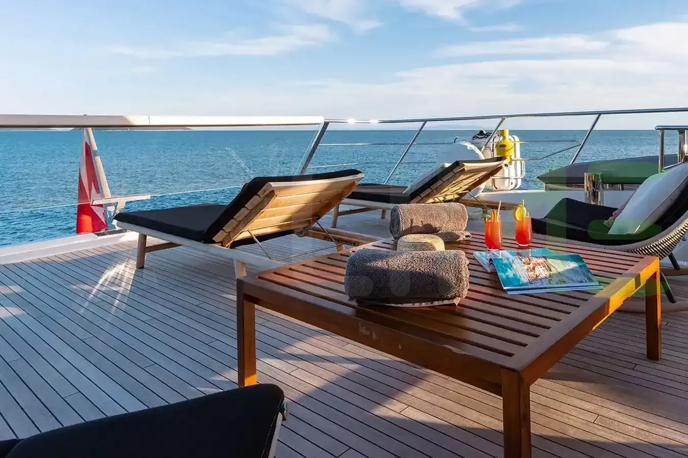 Whatever your activities on your charter, you'll find some impressive features are seamlessly integrated to help you, notably Wi-Fi connectivity, allowing you to stay connected at all times, should you wish. You can stay comfortable on board whatever the weather, with air conditioning during your charter.
