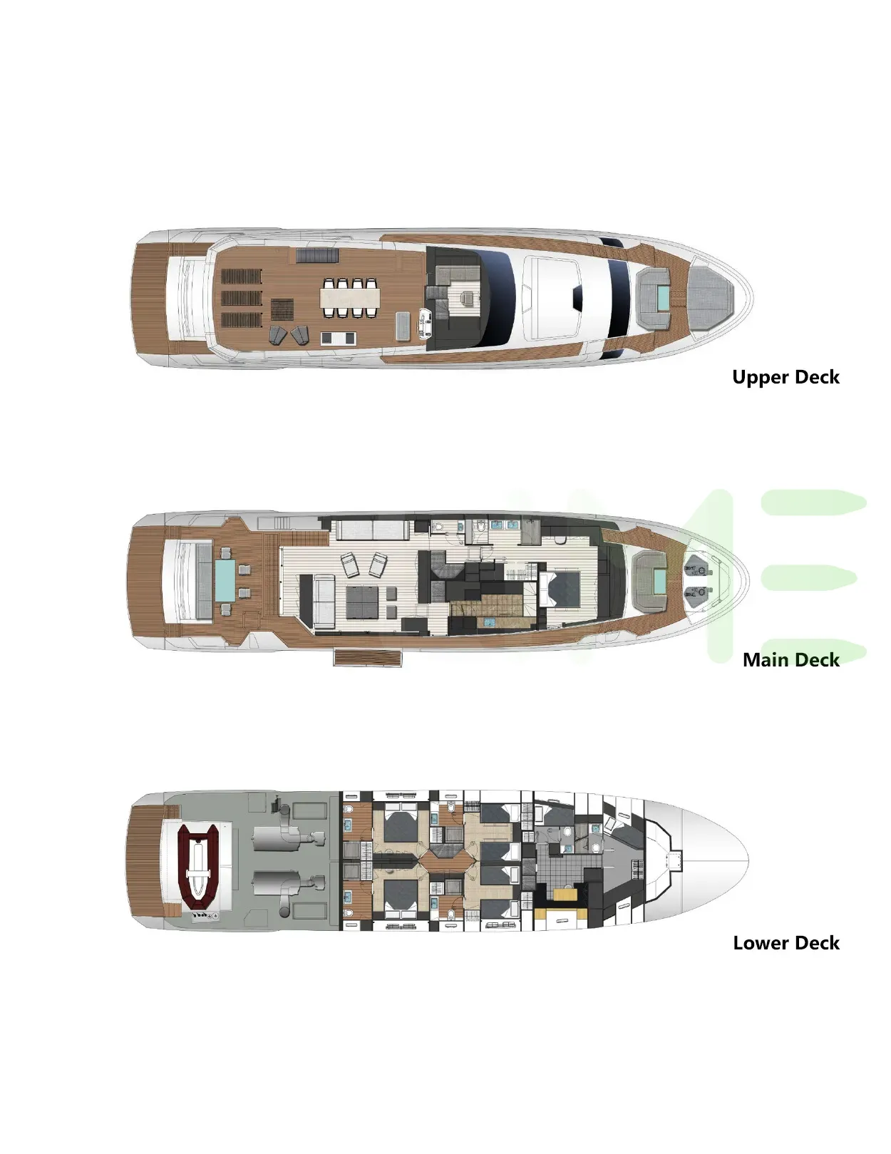 Request plans which include the layout of staterooms, guest areas, and outdoor spaces, as well as crew quarters and working spaces.