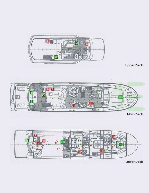 Request plans that include the layout of staterooms, guest areas, and outdoor spaces, as well as crew quarters and work areas.