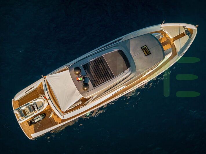 Constructed with a GRP hull, and Carbon Fibre superstructure, she offers ample exterior and interior space.